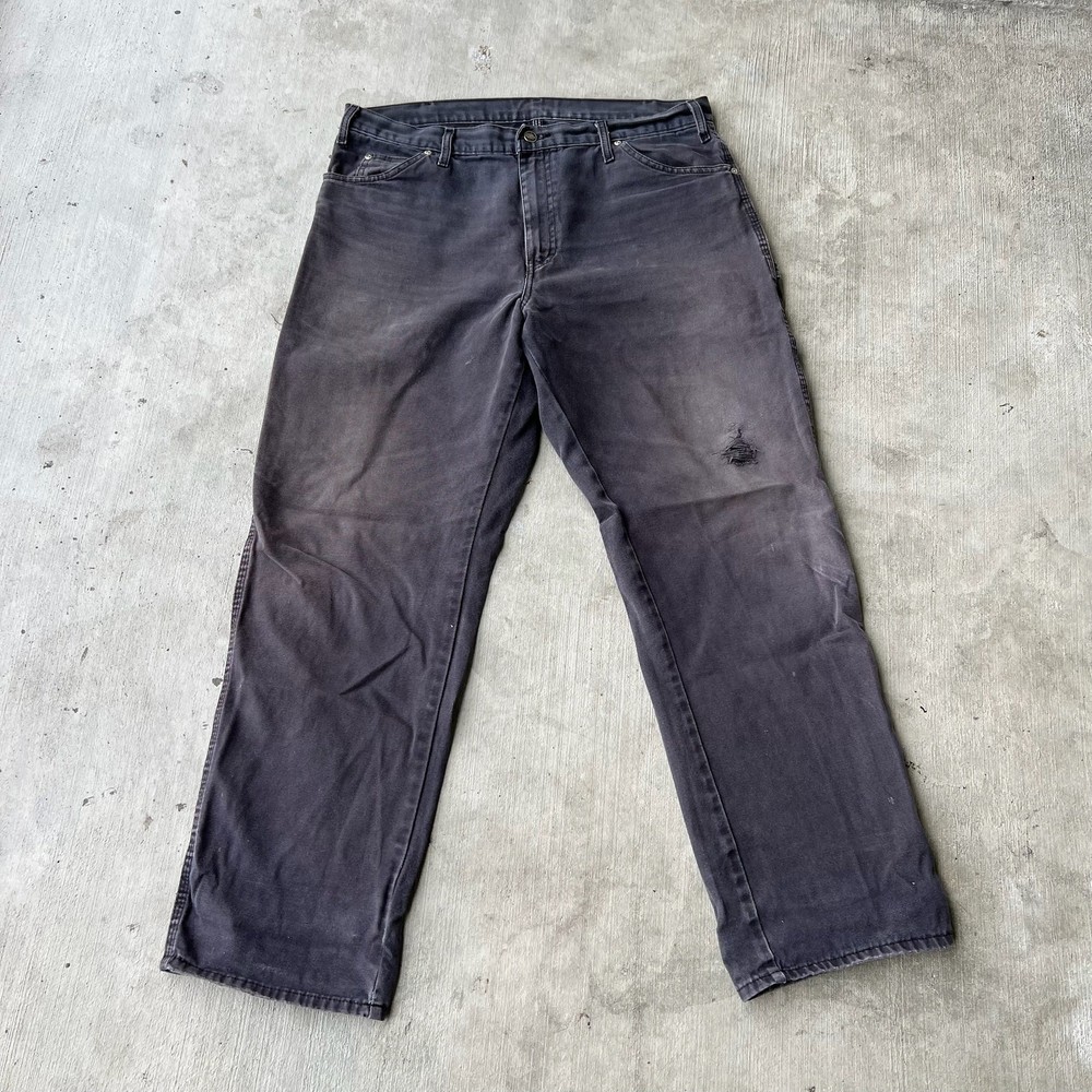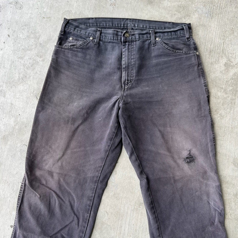 Vintage Y2K black dickies carpenter work wear jeans. Great pair. Tear on knee and back right pocket. Measures 37x32 with a 9 inch leg opening. Please check measurements before purchasing. I do my best to show any flaws in pictures. Quick shipping! Bundles encouraged! @ants_haul on Instagram. 617!!!