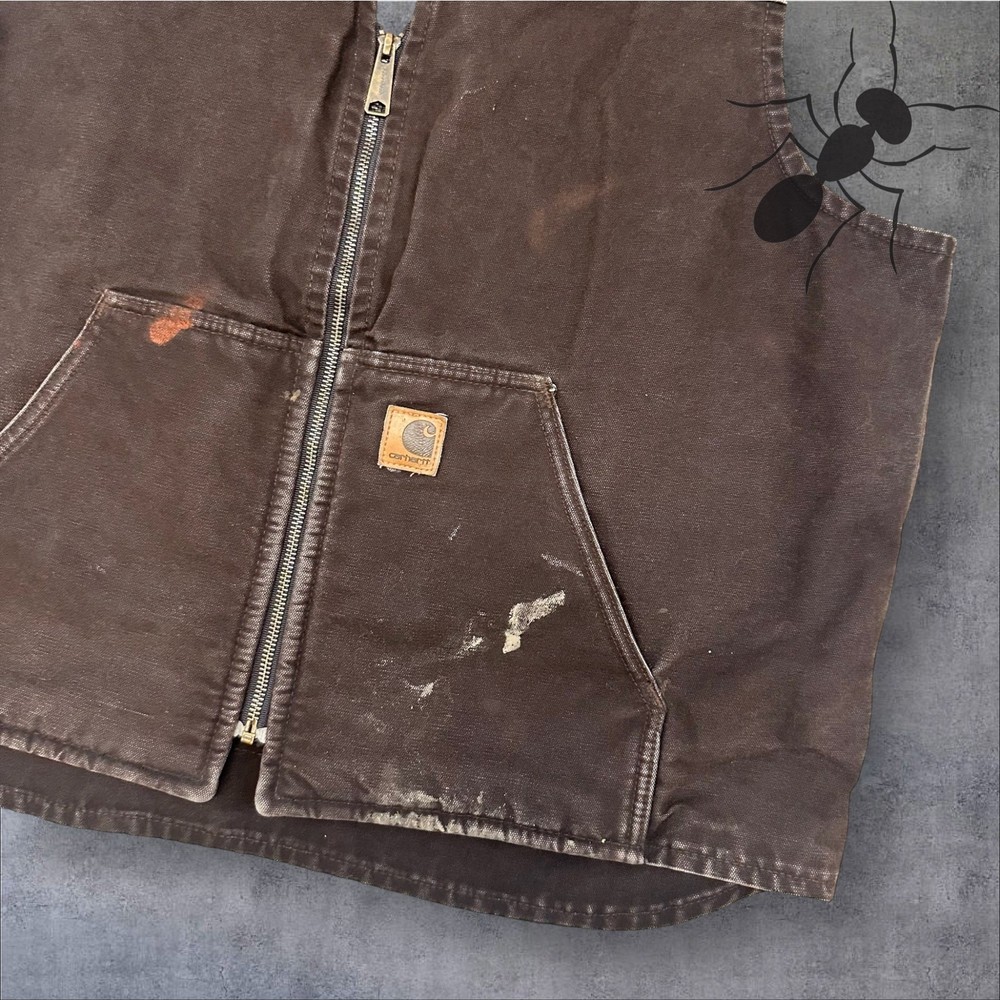 Vintage Y2K brown Carhartt Sherpa lined work wear vest. Great one! Paint stains on front and back. Measures 25x28. Please check measurements before purchasing. I do my best to show any flaws in pictures. Quick shipping! Bundles encouraged! @ants_haul on Instagram.