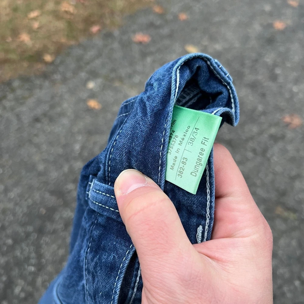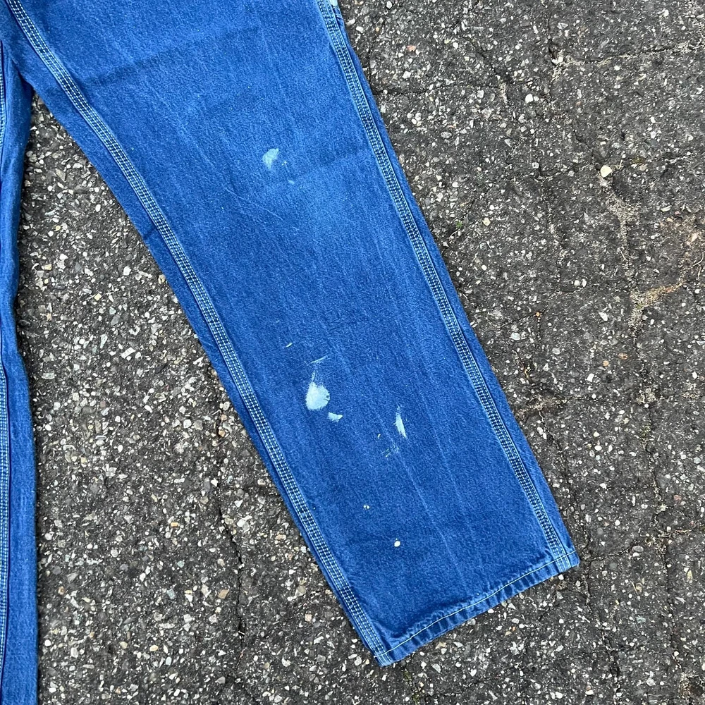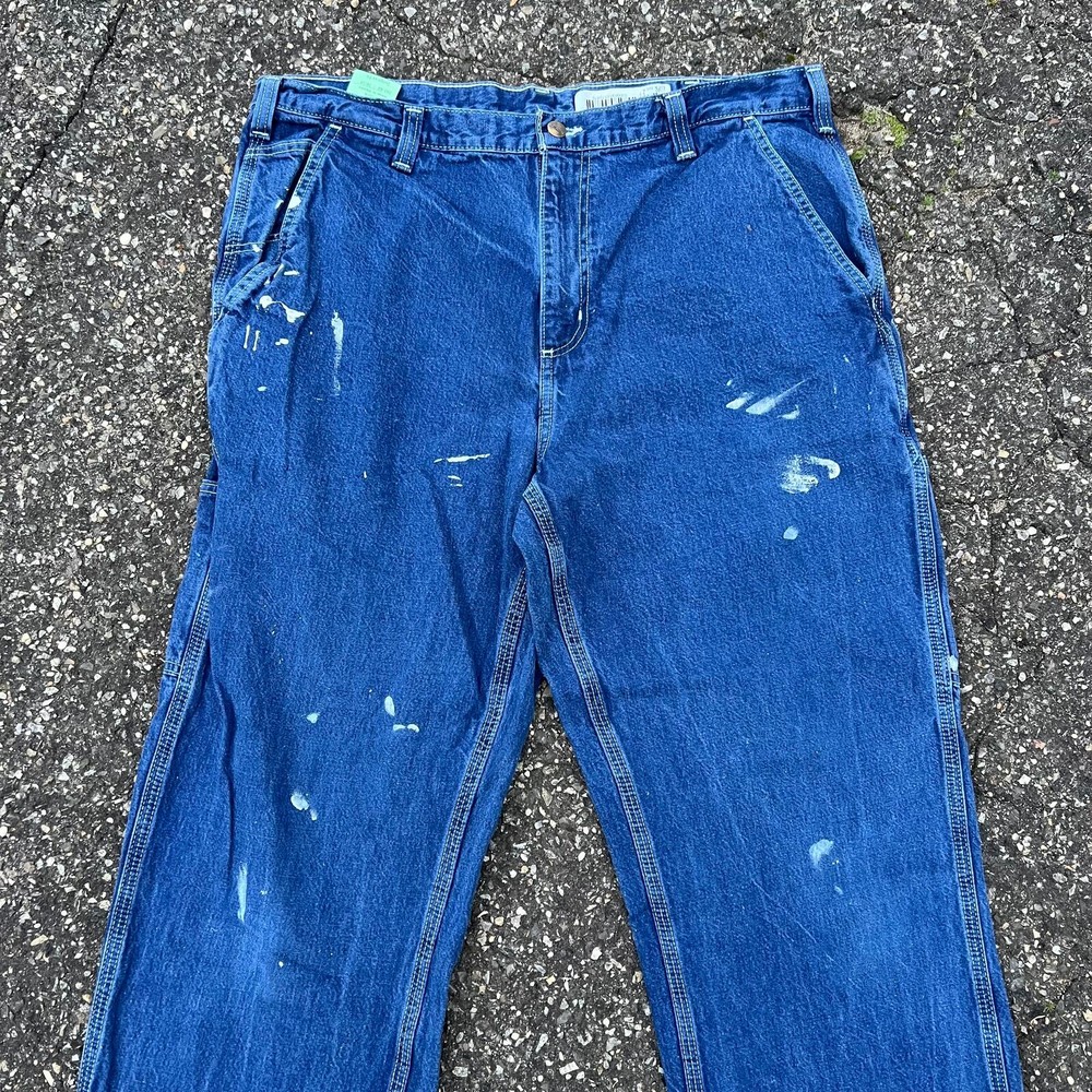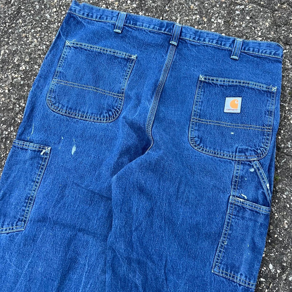 Vintage Y2K Carhartt blue denim jeans work wear carpenter pants. Great pair. Measure 38x34 and a 9.25 leg opening. Please check measurements before purchasing. I do my best to show any flaws in pictures. Quick shipping! Bundles encouraged! @ants_haul on Instagram. 418!!!