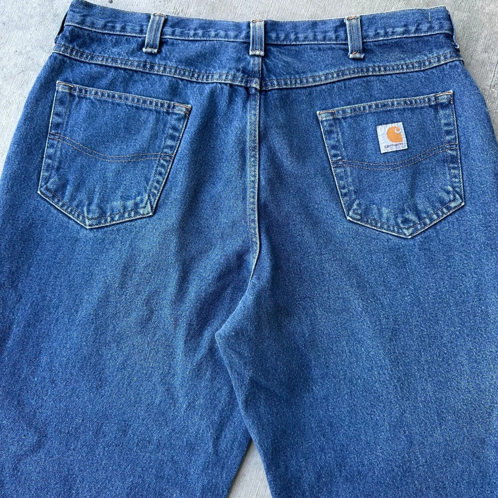 Vintage Y2K denim blue jean Carhartt work wear carpenter pant. Marks on front. Measures 37x28 with a 9 inch leg opening. Please check measurements before purchasing. I do my best to show any flaws in pictures. Quick shipping! Bundles encouraged! @ants_haul on Instagram. 0754!!!