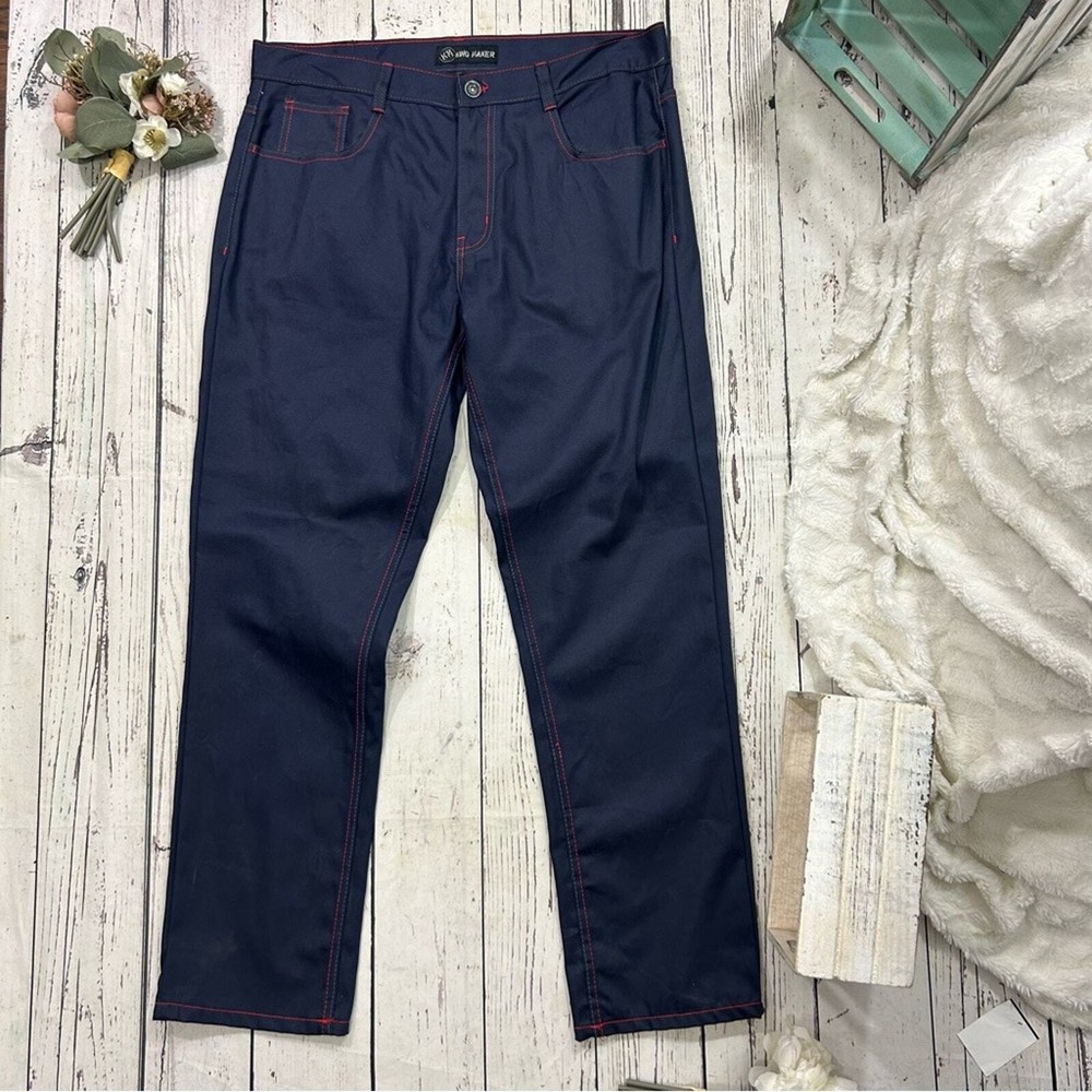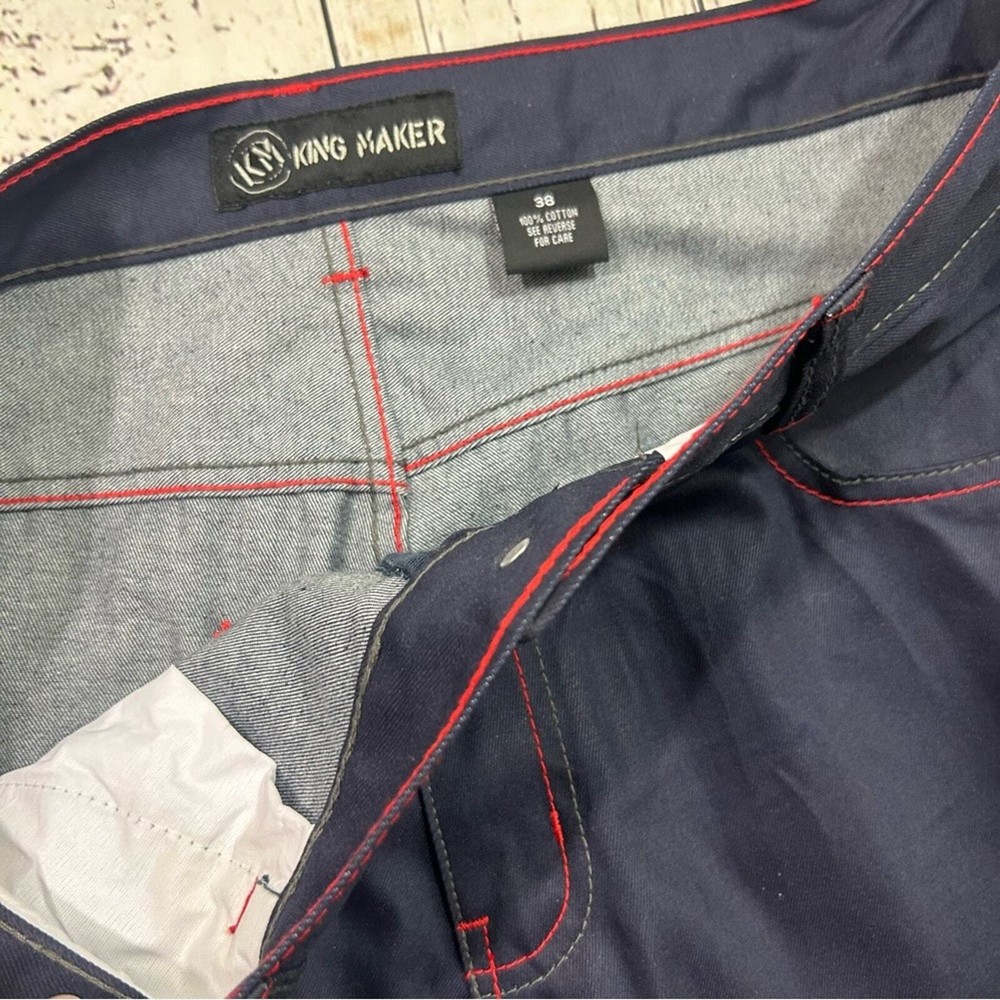 Pre loved king maker vintage y2k baggy skater hip hop jeans . Embro back pockets . In excellent condition. Size 38 . Flat lay measurement waist 19 inch . Rise 12 inch . Inseam 32 inch . Navy Shipped with USPS Priority Package, No returns but backed by ebay money back guarantee. If you have any other questions please contact seller . Please leave a wonderful feedback once you are satisfied with the purchase , Thank you . Custom charges may apply for international purchases .