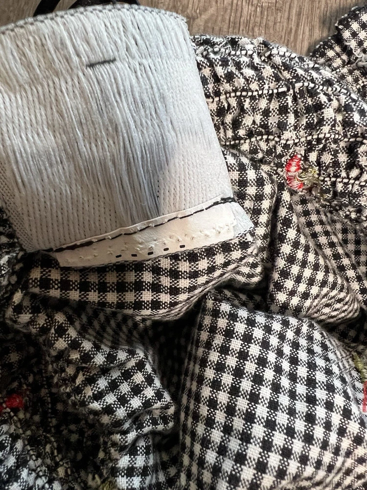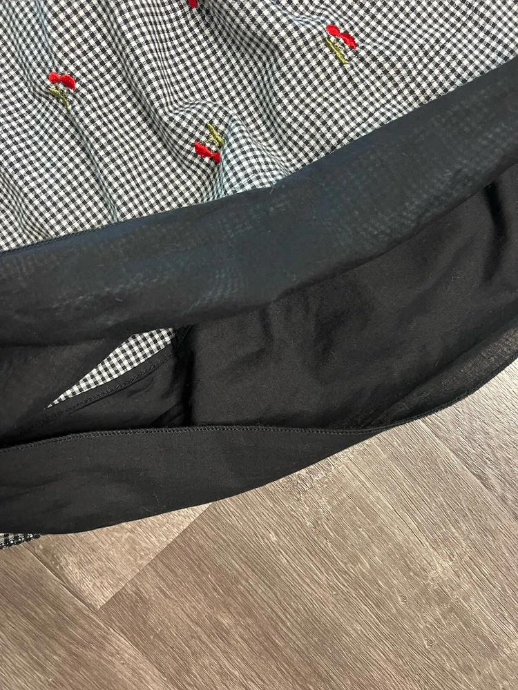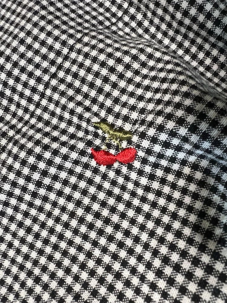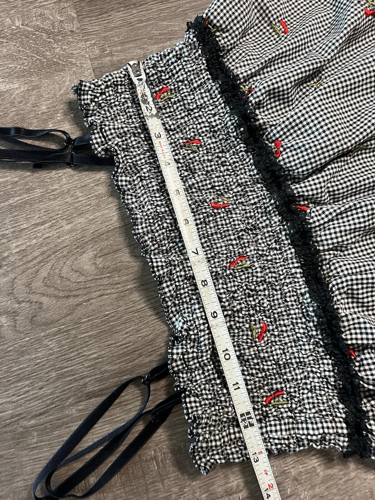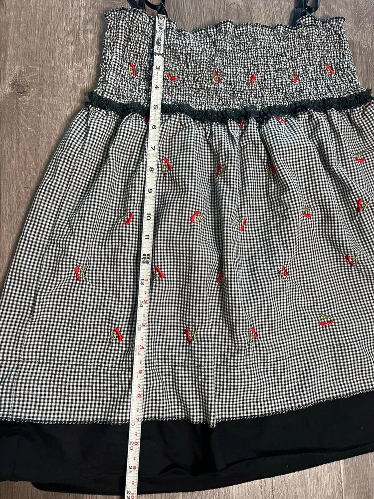 This vintage early 2000’s late 90s Lip Service mini dress or too is a must-have for any fashion-forward individual. With a unique blend of goth, punk, rockabilly and emo aesthetics, this mini dress or top is perfect for everyday wear. The black and white gingham cotton material with embroidered cherries adds a touch of whimsy goth to the outfit, while the cherries all over and hemline provide a playful touch. Adjustable bra type straps. Could be worn as a top over jeans Or leggings or as a mini dress! Could be casual or fancy depending on how you dress it up or down. The dress is an original piece from the 1990s, with measurements clearly displayed in the photos. It is a regular size fit for women, with a chest size that can be referred to in the photographs. Made in the United States, this vintage dress is a rare find that will make any outfit stand out. Beautiful vintage condition.