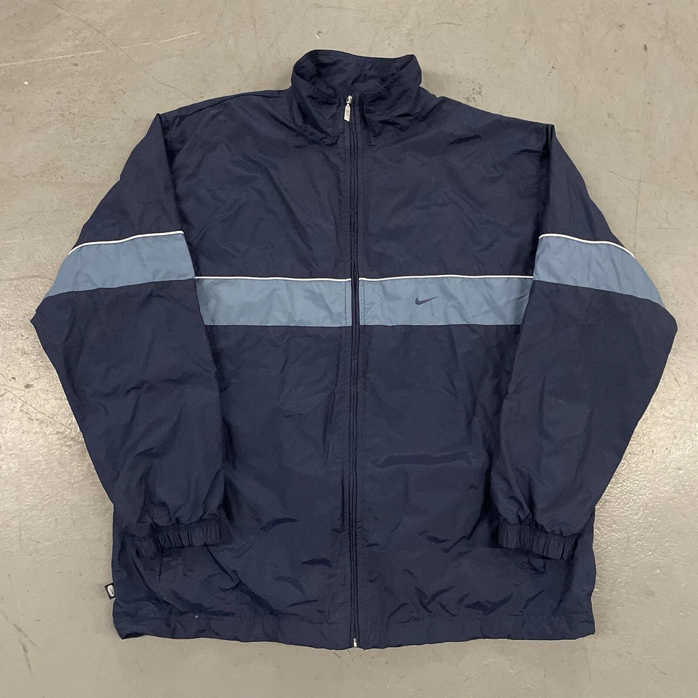 Vintage Y2K Nike Men’s XXL Windbreaker Tracksuit Jacket And Pants Navy Blue in great used condition no flaws message with any questions! Jacket measures 27” x 30.5” and pants inseam measures 32”