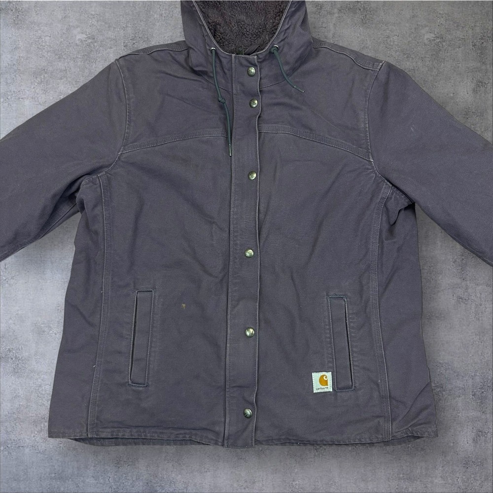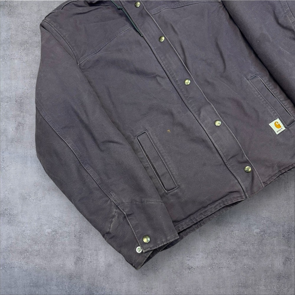 Vintage Y2K WOMENS PURPLE Carhartt Sherpa lined hooded work wear jacket. Great color! Marking on right pocket. Measures 24.5x28. Please check measurements before purchasing. I do my best to show any flaws in pictures. Quick shipping! Bundles encouraged! @ants_haul on Instagram. J0085!!!