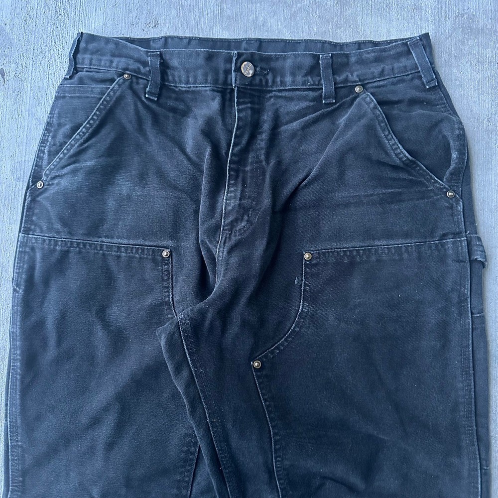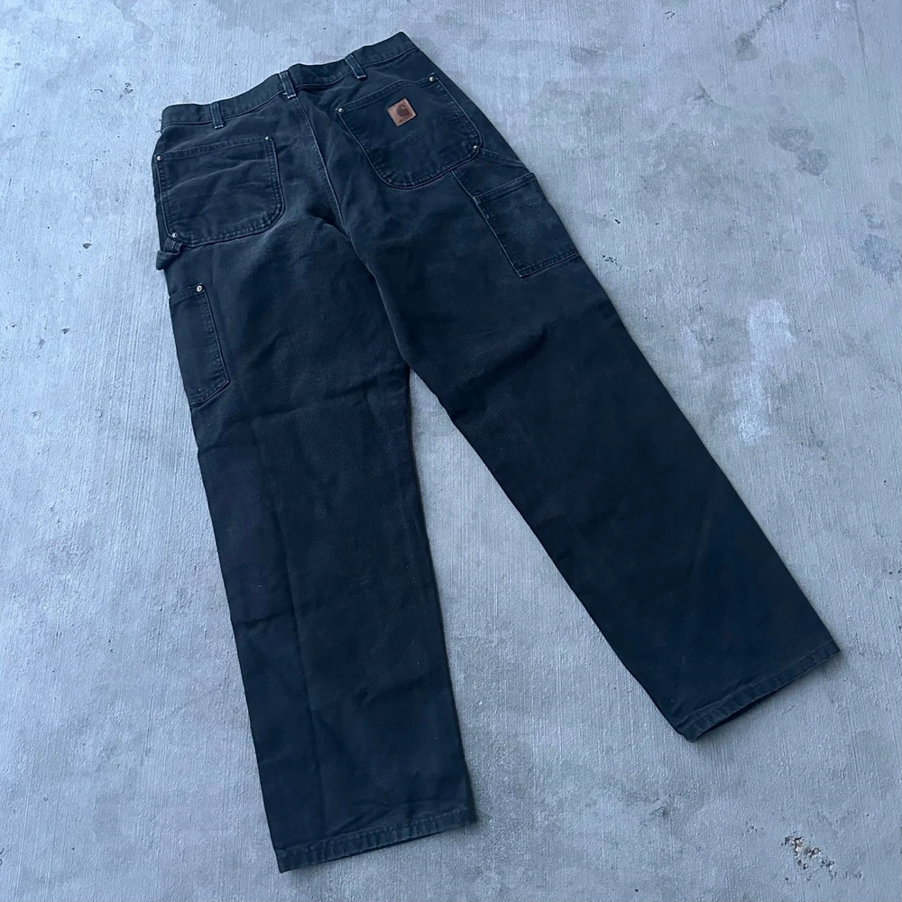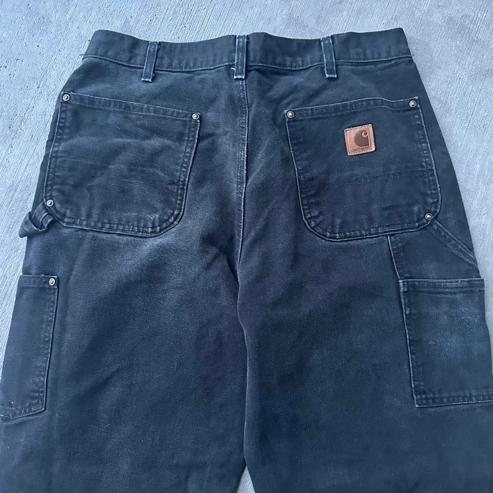Vintage Y2K black Carhartt double knee work wear carpenter pants. Good fade. Measures 33x31 with a 9 inch leg opening. Please check measurements before purchasing. I do my best to show any flaws in pictures. Quick shipping! Bundles encouraged! @ants_haul on Instagram. 0657!!!