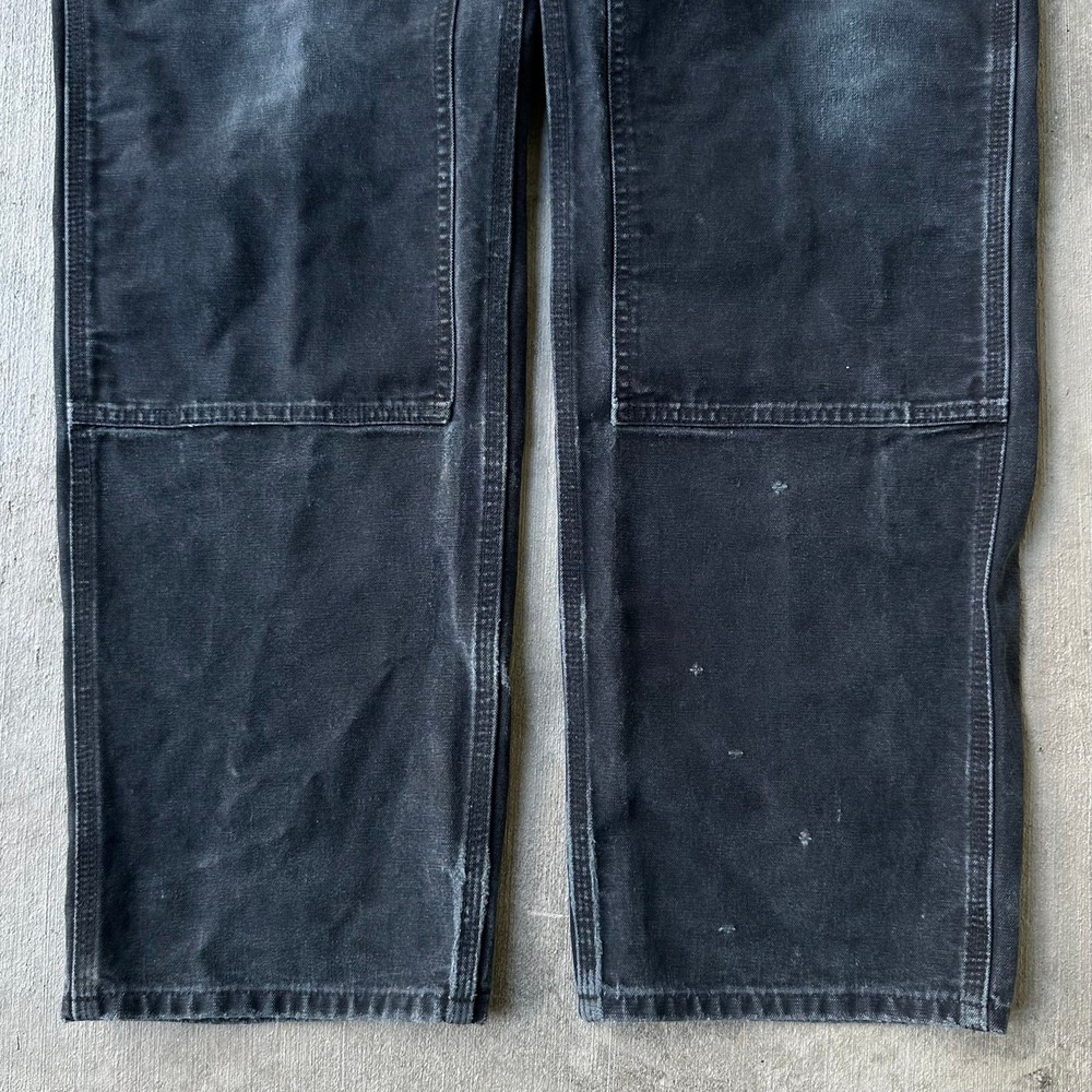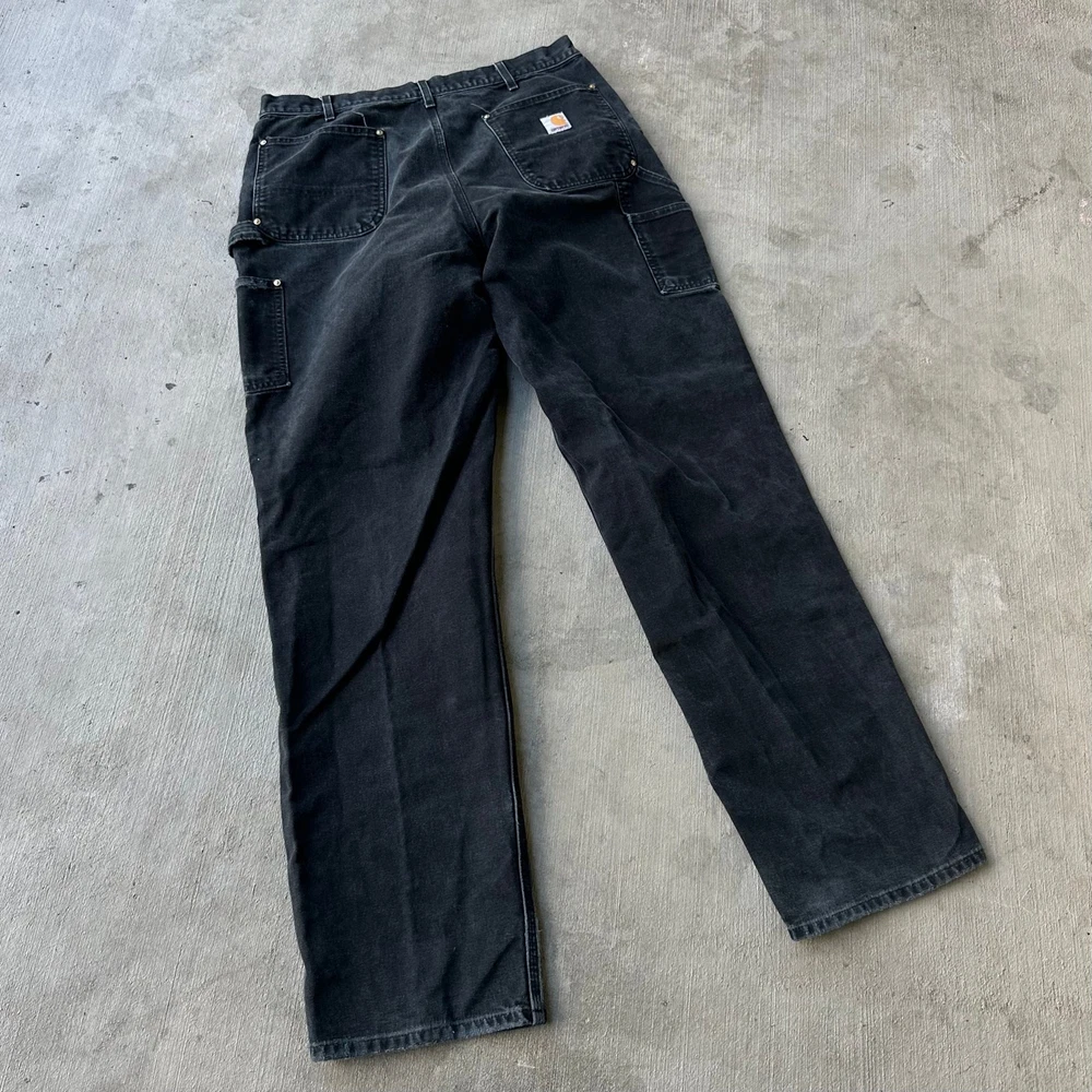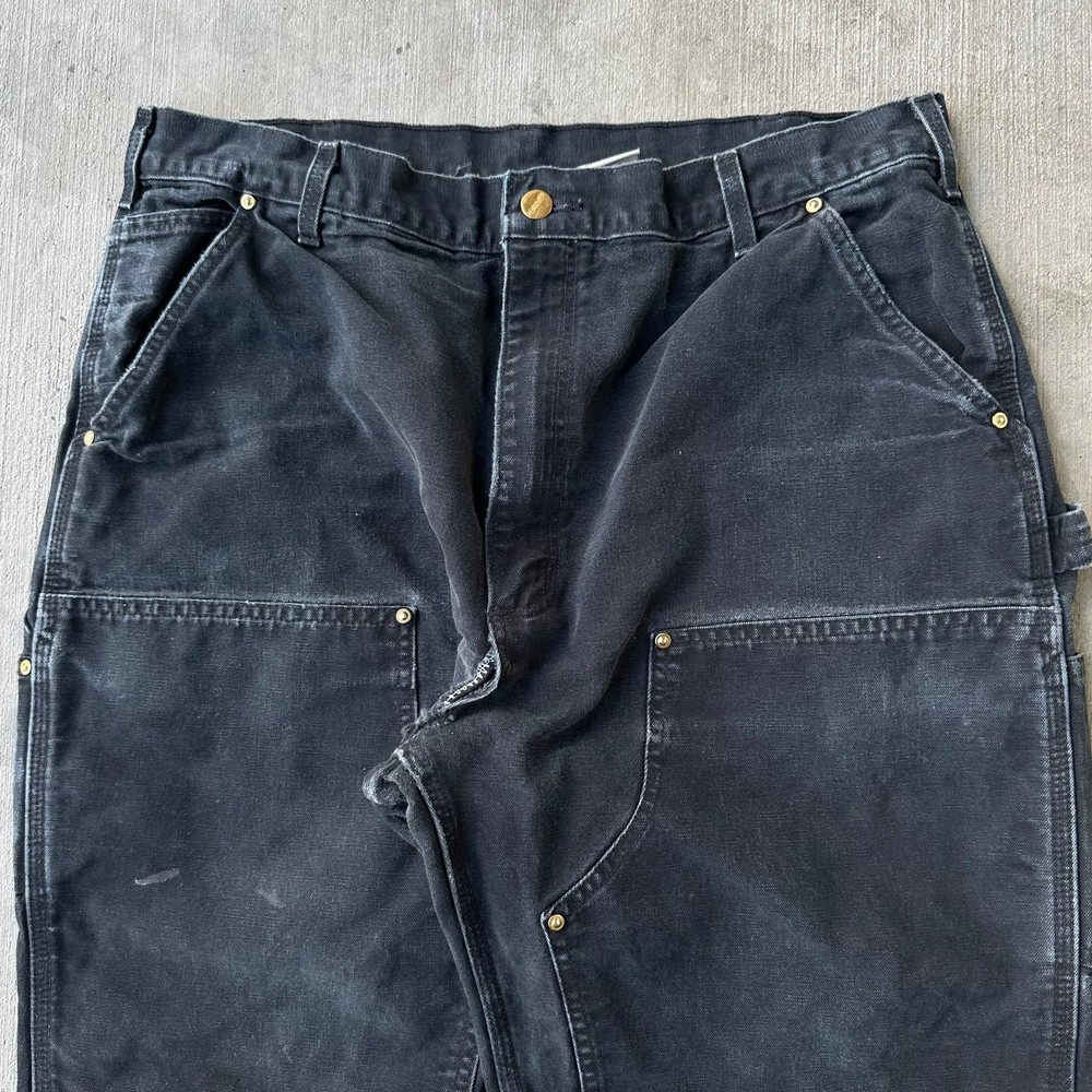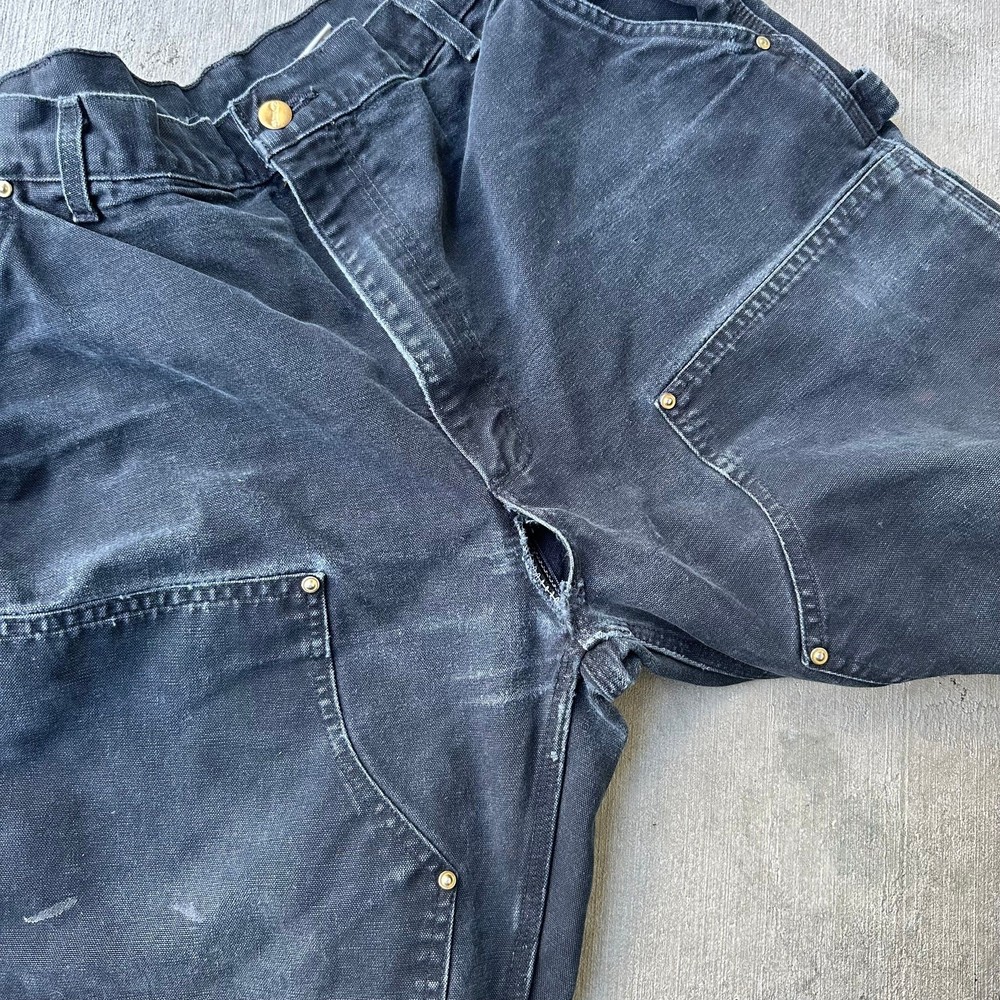 Vintage Y2K black Carhartt double knee work wear carpenter pants. Great pair! Fade on knees. Crotch rip. Marking on thigh. Small tears through. For the taller folks! Measures 35x34 with a 9.25 inch leg opening. Please check measurements before purchasing. I do my best to show any flaws in pictures. Quick shipping! Bundles encouraged! @ants_haul on Instagram. 0738!!!