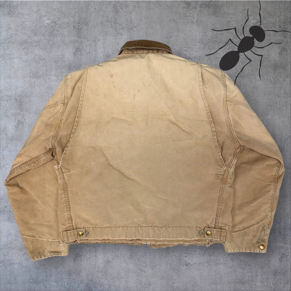 Vintage Y2K brown Carhartt Detroit work wear jacket. Great wear and fade on this one! Stains throughout. Measures 25.5x25. Please check measurements before purchasing. I do my best to show any flaws in pictures. Quick shipping! Bundles encouraged! @ants_haul on Instagram. J0073!!!