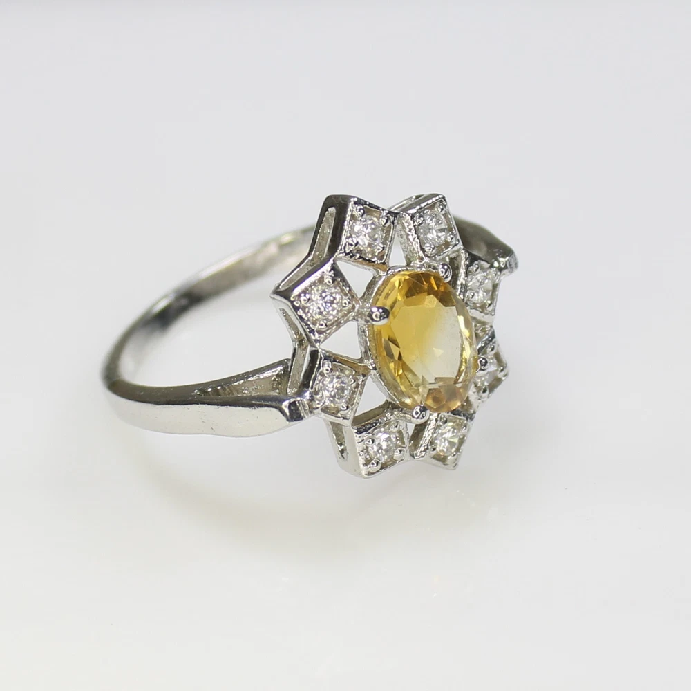 ARBIYA GEMS JEWELRY TYPE : RING STONE : NATURAL CITRINE SIDE STONES : CUBIC ZIRCONIA RING SIZES : ALL SIZES AVAILABLE RING WEIGHT : 3.30 GRAMS RING METAL : STERLING SILVER METAL PURITY : 925 TREATMENT : NONE COUNTRY OF ORIGIN : INDIA HANDLING TIME: 1-2 DAYS DELIVERY TIME : WE USUALLY TAKES 15-25 DAYS BUT MOSTLY IT DELIVERS TO CUSTOMERS WITHIN 15 DAYS RETURN POLICY : RETURN ACCEPTED ON MANUFACTURING DEFECT WITHIN 30 DAYS . RETURN GIVEN AS MONEY BACK OR REPLACMENT FEEDBACK POLICY : PLEASE LEAVE US A POSITIVE FEEDBACK IF YOUR ITEMS DELIEVERED IN GOOD CONDITION