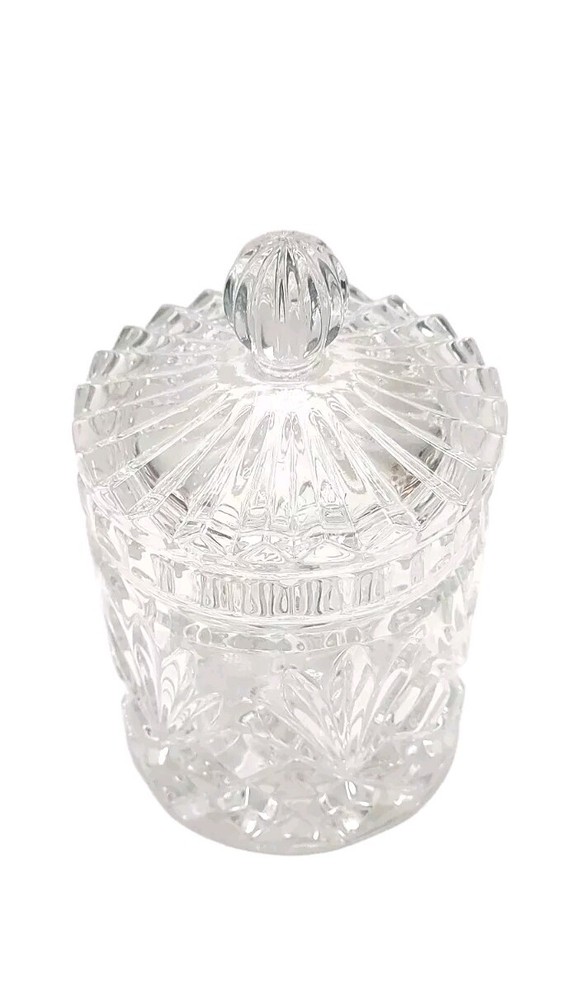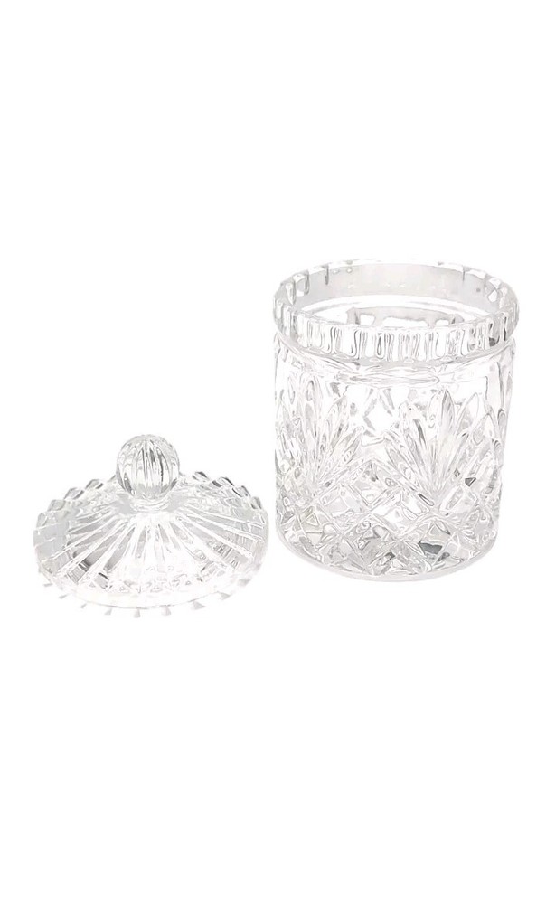 Vintage Zajecar Crystal Candy Dish is an Art Deco style piece originating from Yugoslavia in 1970s. Handmade with 24% Leaded Crystal, it features a Brahms pattern & lid Measuring approximately 5¾ in height, it is an elegant storage jar with a beautiful cut style finish, perfect for adding a touch of sophistication to any space. It's in excellent condition showing no damage such as chips or cracks. This would work lovely in a bathroom, on a vanity, or even in the kitchen for candy or dry goods. This piece will ship with immense care & fast! If you have any questions or would like more pictures of a certain angle I may have missed just reach out & I will reply promptly. Thank you!