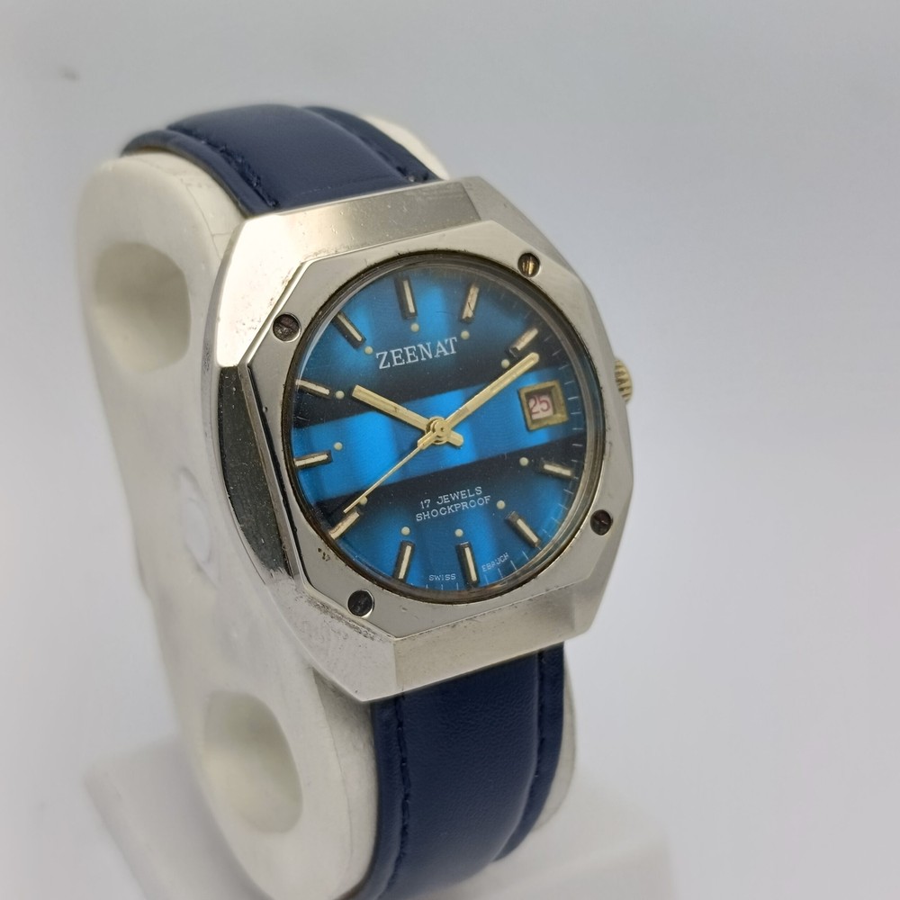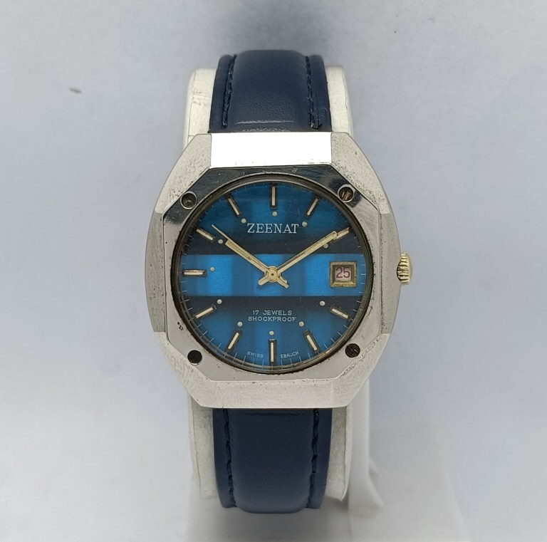 "Special Note for Buyers" As You know all dear Buyers there is a strict policy regarding Shipping of items. We are still struggling that our customers did not find any issue regarding their shipping and delivery of their items. As we are using less expansive shipping which is economy shipping and best from our side that is preferable as per your expanse. Besides, anyone who wants to their items in early and fast track they must select Standard Shipping instead of Economy Shipping which costs (35$ which delivers in between 15 to 20 Days). I must request to all buyers select your shipping status as per your convenience Following countries can contact and select their Shipping services as per their own convenience. With 35$ OFFERING FAST SHIPPING (Arramax or USPS) Economy Shipping Cost : 14 $ Delivers in between 11 to 40 days Standard Shipping Cost : 35 $ Delivers in between 15 to 20 days some items are placed with fast shipping with 35$ which are costly. ( US Buyers must use FAST SHIPPING USPS Services in 35$) Israel, India are permanently excluded Package: All items will be carefully packed and shipped to you in a paper box or envelope bags Shipping: Normal 19-40 days to arrive at the destination. Special: 15-20 (may be earlier as per location details) days to arrive at a destination, special circumstances include holidays, special weather, customs clearance, and remote areas. Zeenat Manual Winding Blue Dial Vintage Men’s Watch C ondition of watch: Watch is in working condition, Please see the pictures carefully before buying. Defects of watch: There are some Scratches on the watch The strap is Aftermarket Measurements of watch: Case width is 37 mm without crown Case width is 39 mm with crown Case thickness is 11 mm lug width is 18 mm Please Note! Photos are also part of the description, and any defect or detail shown in the pictures will be considered disclosed. Product code: WQS1890KS2