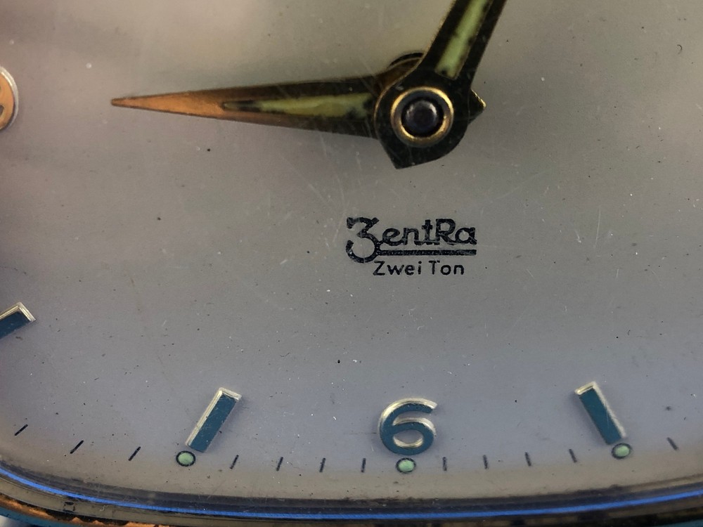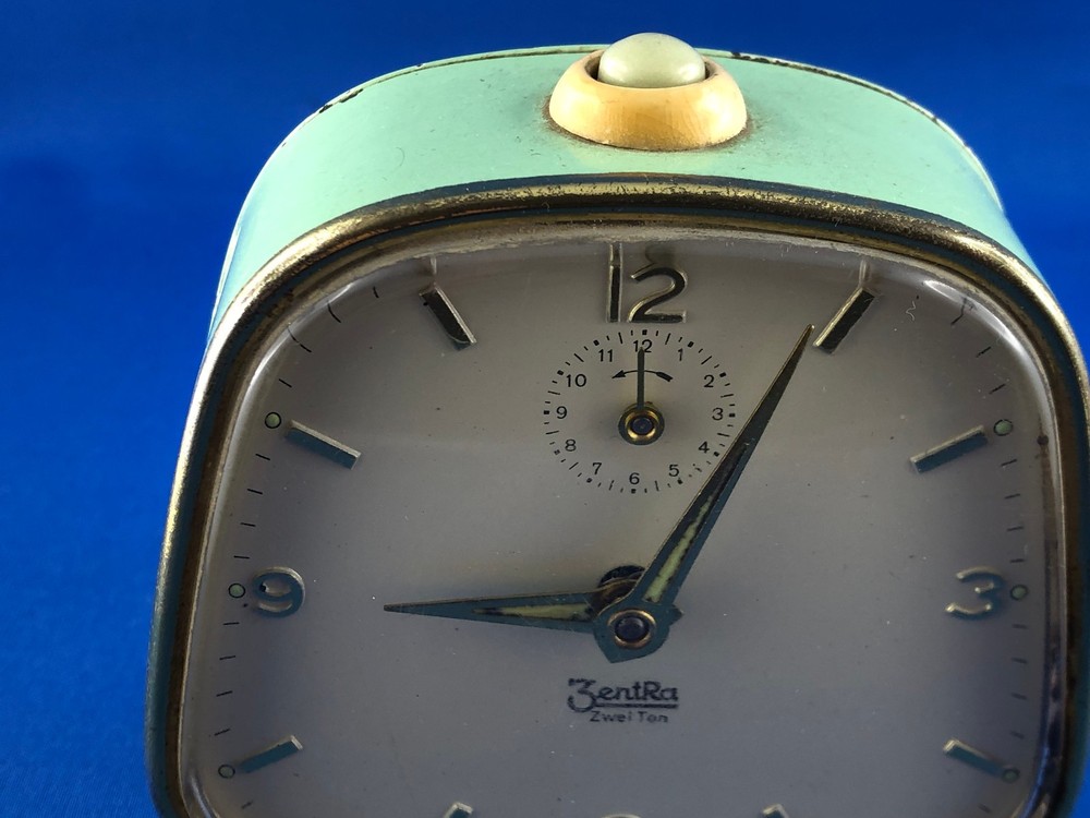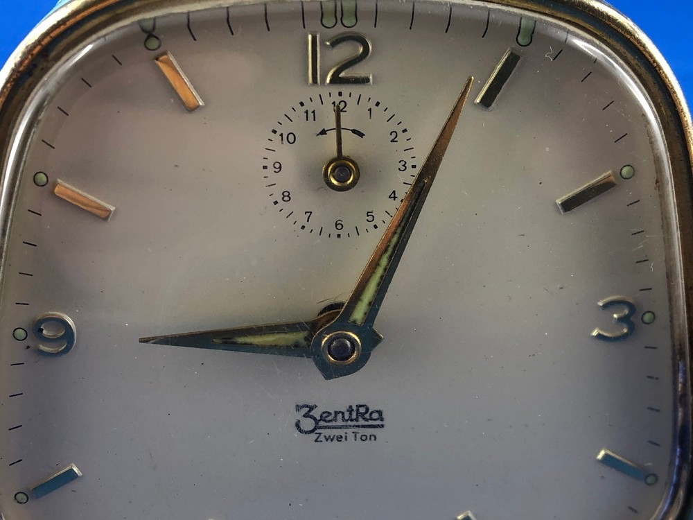 $ 18.48VTG Swiss Made Clinton 7 Jewel Brass Alarm Table Clock Non-Working