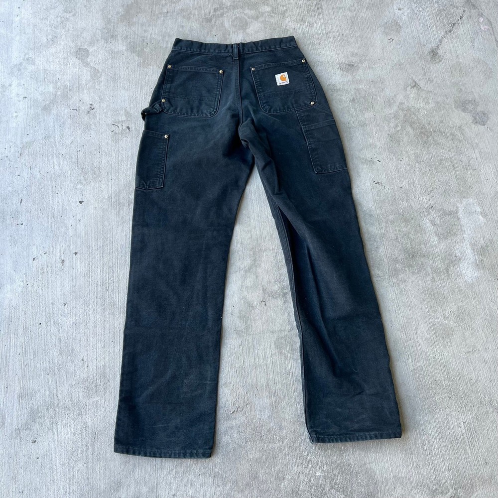 Vintage carhartt black y2k double knee work wear carpenter pants. Great essential pair. Measure 27x31 and a 8.25 leg opening. Please check measurements before purchasing. I do my best to show any flaws in pictures. Quick shipping! Bundles encouraged! @ants_haul on Instagram. 0709!!!
