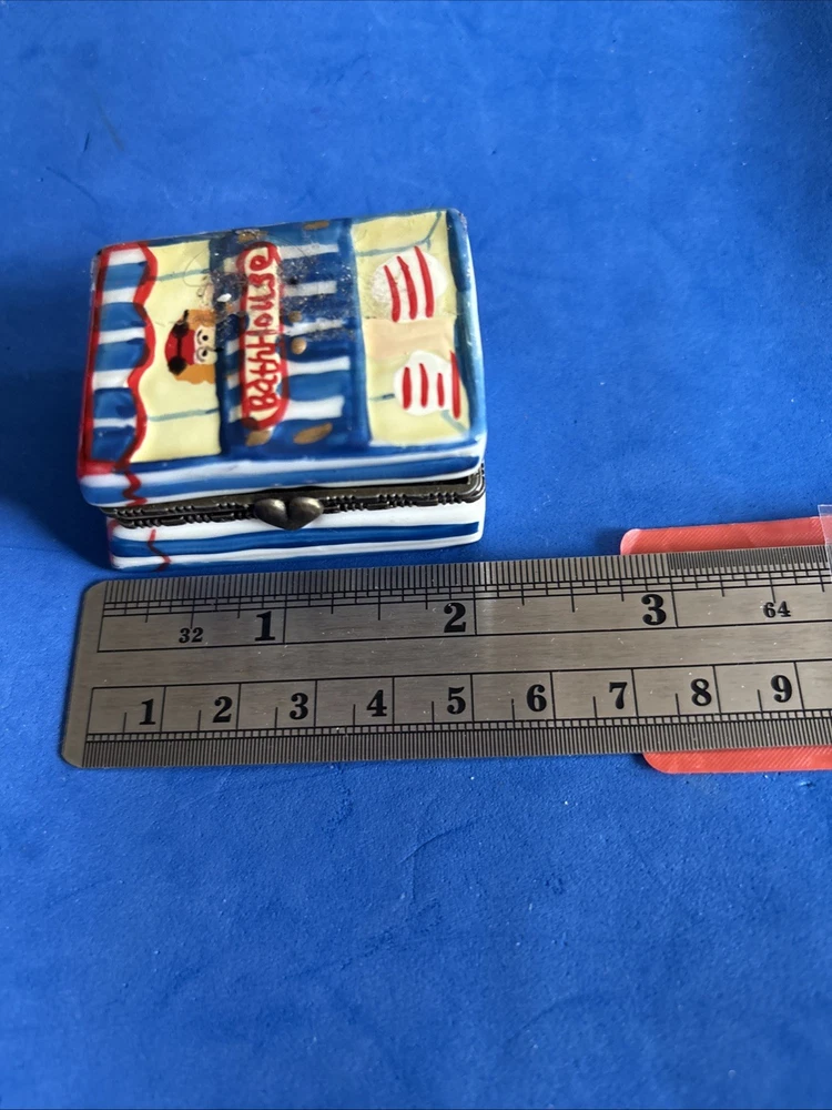 This vintage jewelry box is the perfect addition to any collection! The adorable teeny trinket box features a charming beach house design, complete with an enamel finish and a lid. Measuring in a convenient rectangle shape, this box is the perfect size for storing your smallest treasures. The box is made of high-quality materials, ensuring that it will last for years to come. It is perfect for collectors of decorative items, and would make a great addition to any home decor. The box is also a wonderful gift for loved ones who appreciate unique and charming collectibles.