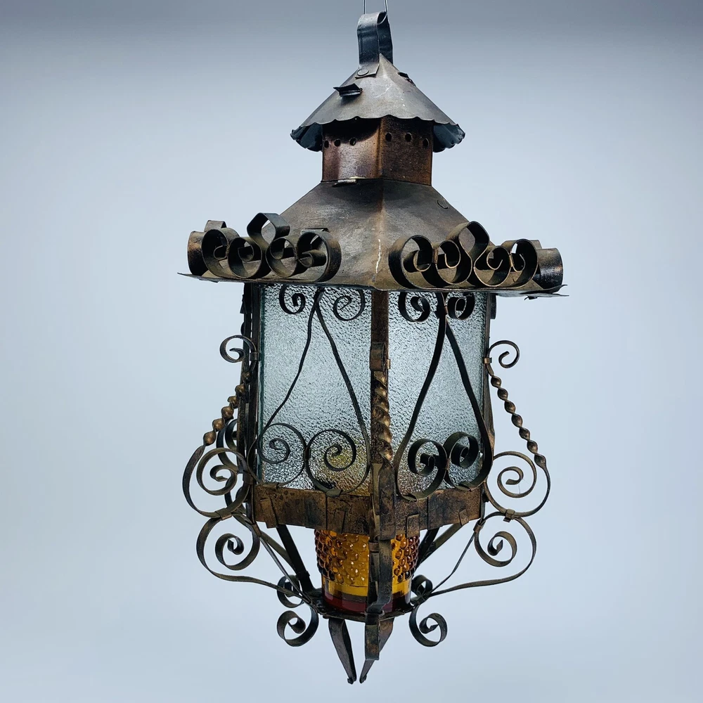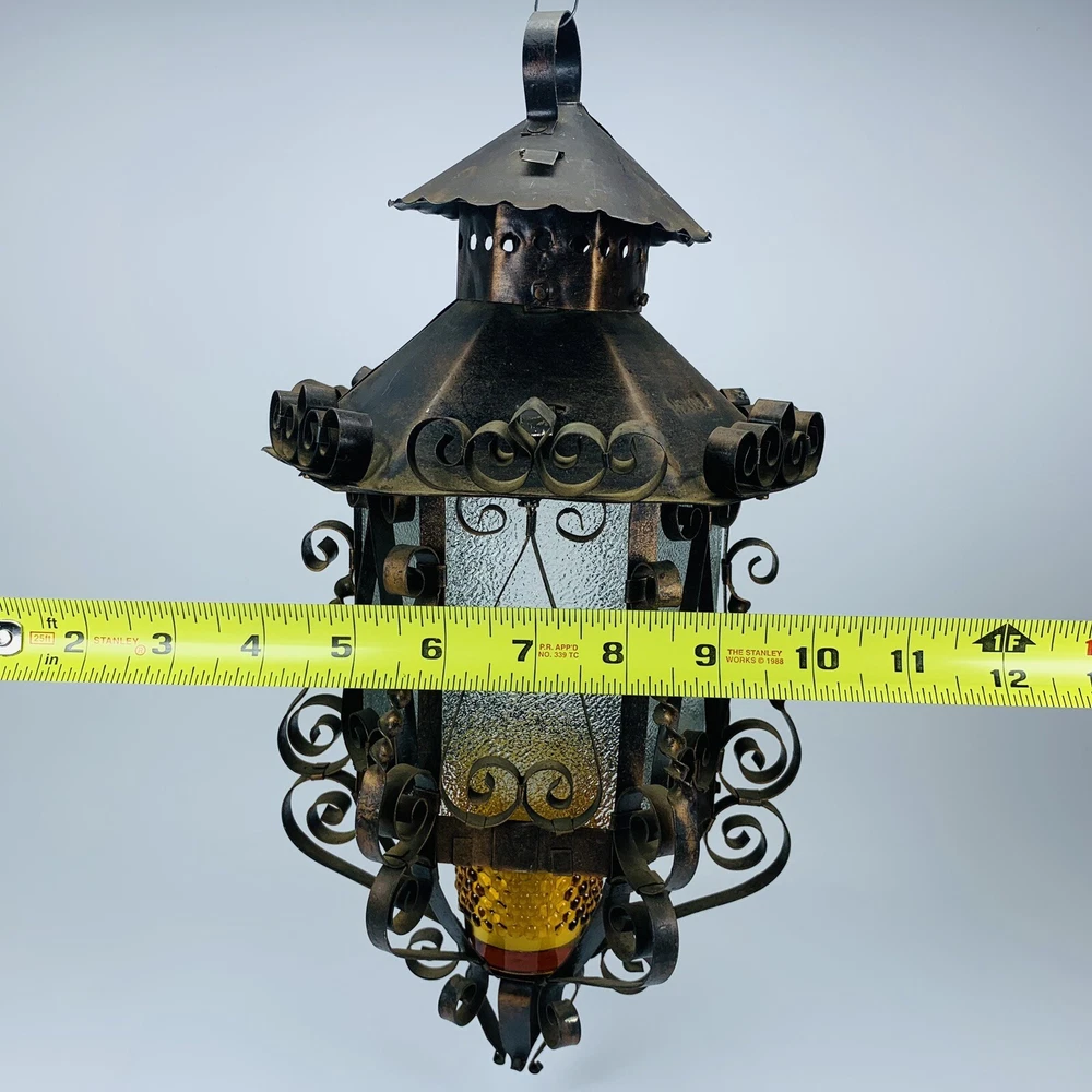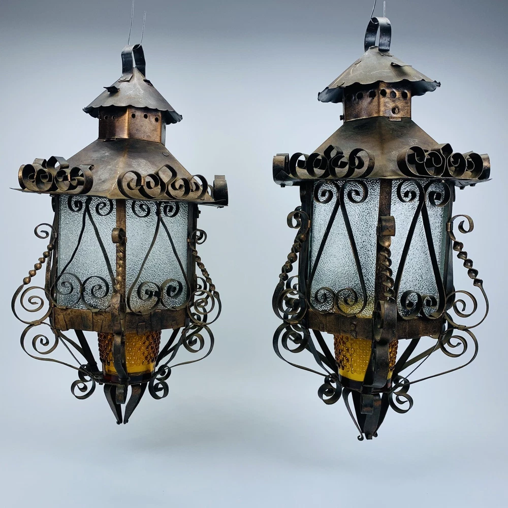 Vintage pair Gothic Spanish Revival Hanging Light Fixtures Lanterns.. Shipped with USPS Ground Advantage.