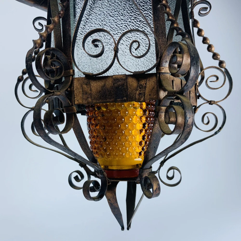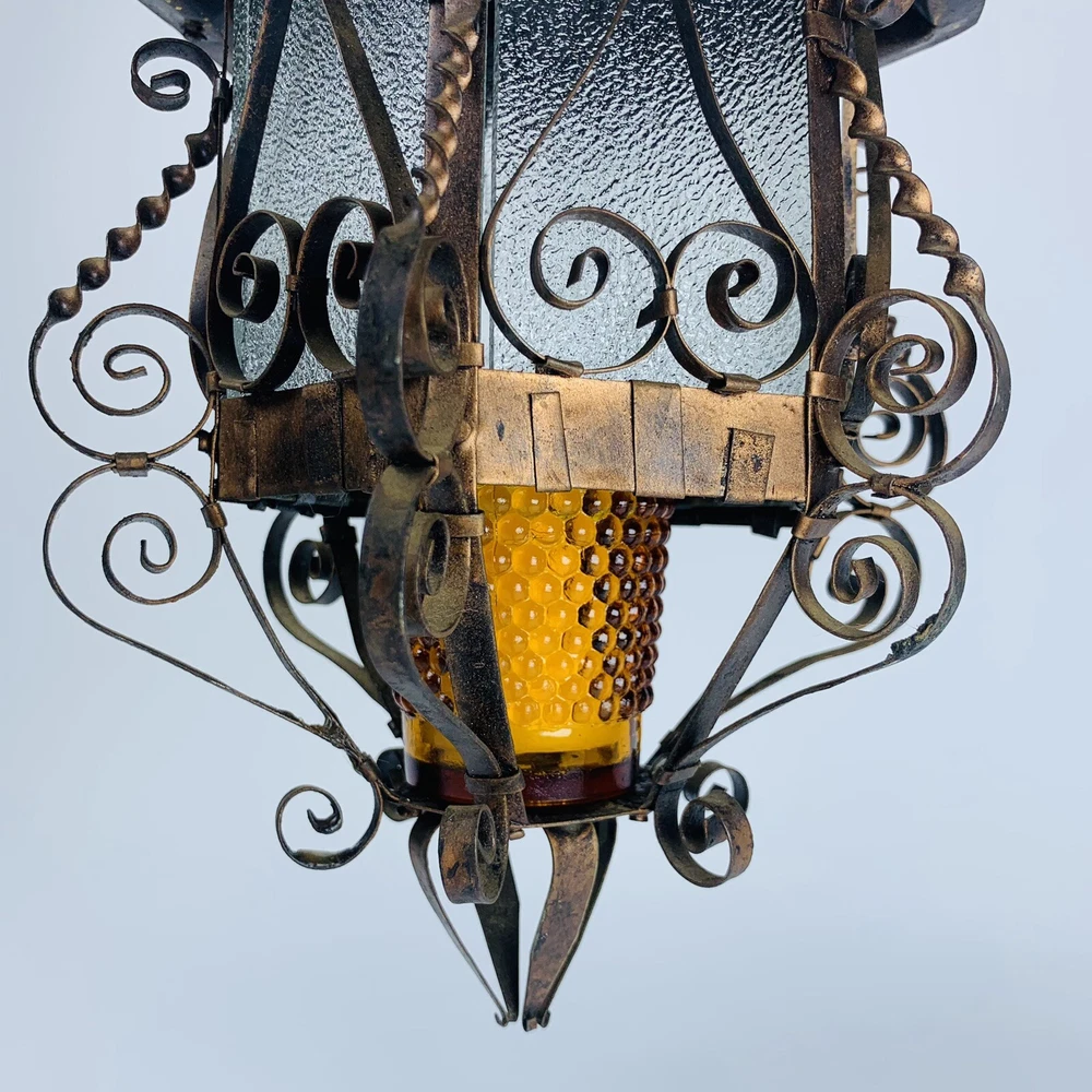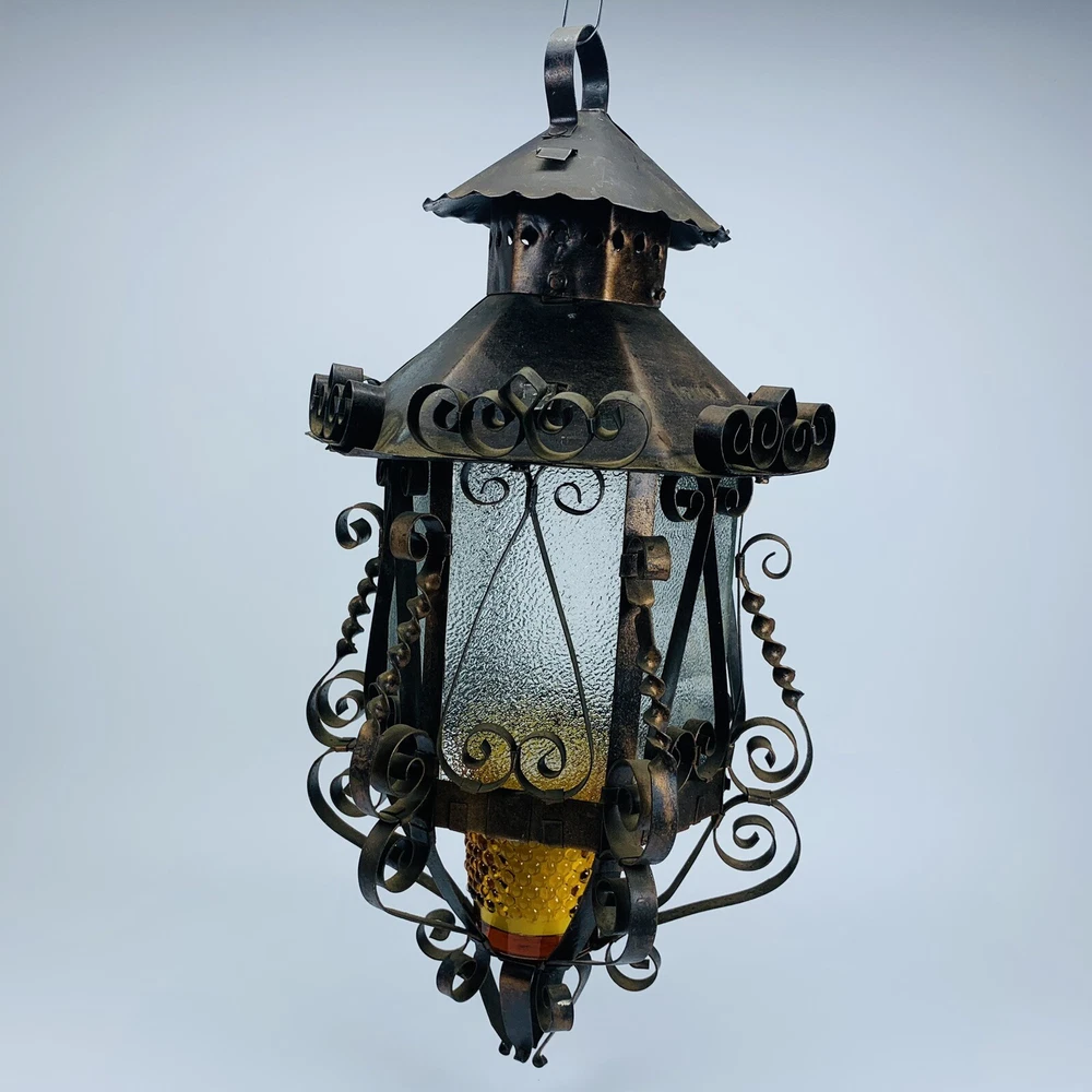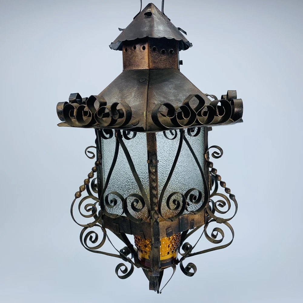 Vintage pair Gothic Spanish Revival Hanging Light Fixtures Lanterns.. Shipped with USPS Ground Advantage.