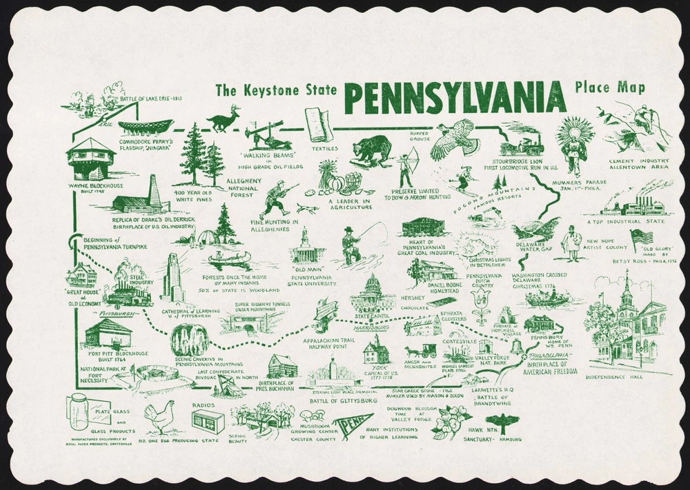 Vintage placemat PENNSYLVANIA The Keystone State picturing various landmarks