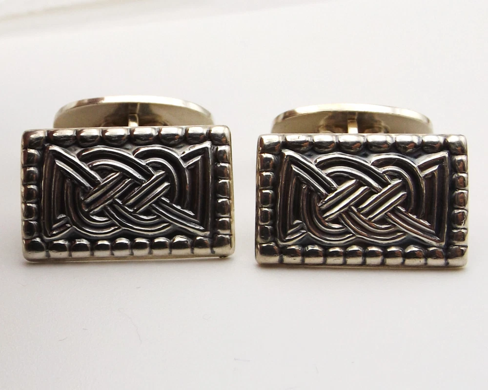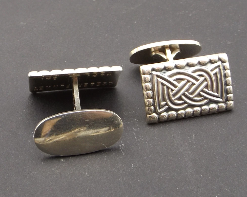 VINTAGE STERLING SILVER CUFFLINKS FROM THE SAGA SERIES BY DAVID ANDERSEN OF NORWAY OBLONG CUFFLINKS IN A CELTIC PATTERN THE MARKS ON THE BACK ARE AS FOLLOWS: OSEBERGFUNNET KOPI DA 850 KR The Andersen SAGA series, produced in the1960s, and the insiration was taken from prehistoric finds, now in the Olso Historical Museum. The Celtic Motif is based on an archeological fine at Obsberg in circa 850 AD as stated on the back marked sterling and 830 830 is a Norwegian standard of silver used in Norway until the 1970s so these cufflinks are an earlier example of this design EACH CUFFLINK MEASURES 21 X 13 MM 13/16" X 1/2" THE FRONT IS FIXED, THE BACK ELEMENT SWIVELS STUNNING DESIGN will be sent in a cufflink box please check my other items, only one postage charge Always happy to combine postage, we prefer to invoice when you are finished. We post every day Monday to Friday, and try to post same day or next day - happy to post Saturday if you ask! We mainly sell used items, so there may be wear, but we try to describe accurately - we might occasionally miss something or even completely mess things up - we are human - but never intentionally and will always try to resolve any issues. Contact me via ebay messages if you have any concerns with your purchase. Please be aware that International purchases may incur customs charges and may also be slightly delayed in customs. Any questions, just contact us via messages, we will get back to you as quickly as we can.