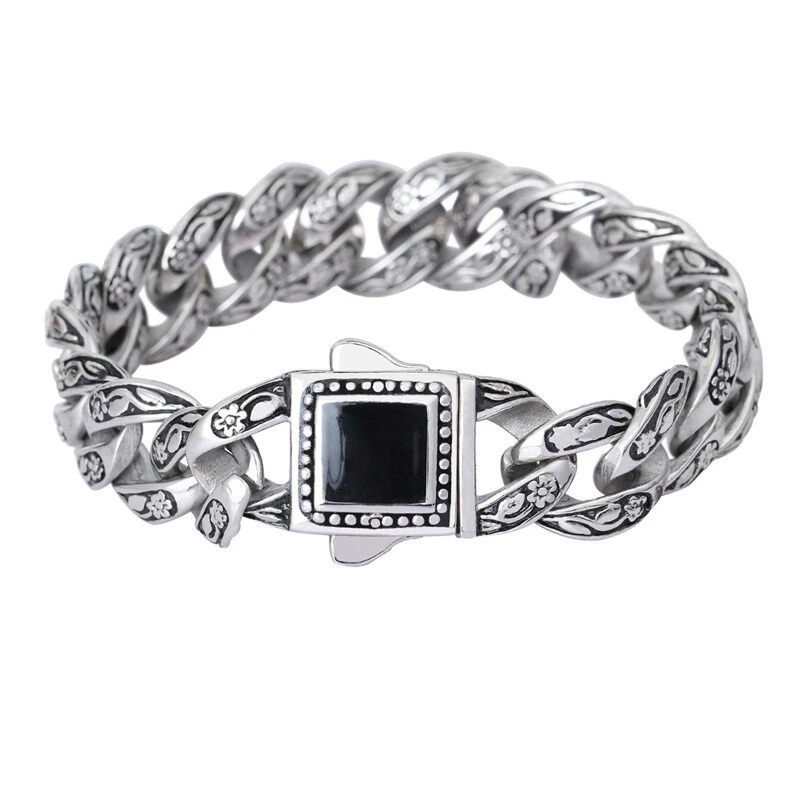 Vintage titanium steel hip hop rose set with black stone button bracelet for men