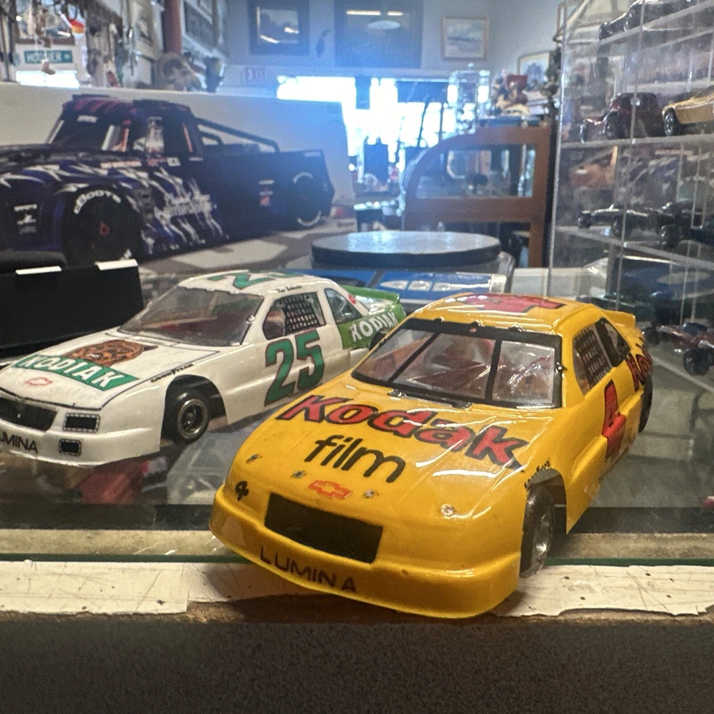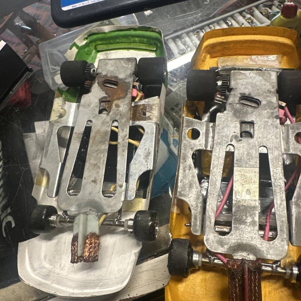 upper your consideration of the two slot cars you see in the pictures. These come complete ready to go. It’s been a while since I’ve been on the track, but the motors are moving freely. Thanks for looking and good luck.
