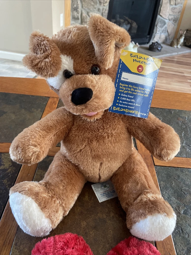 HomeVintage,Build -A-BEAR plush brown sugar dog, stuffed toy W/ Christmas Booties