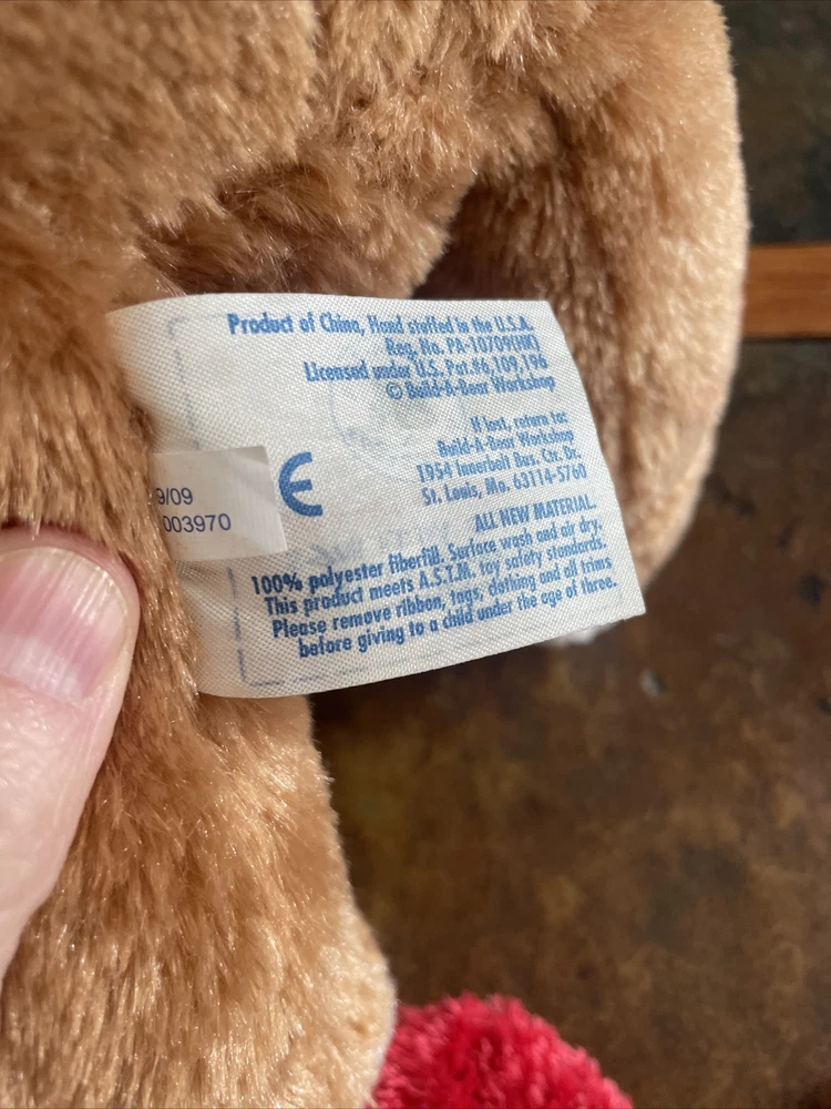 Vintage,Build -A-BEAR plush brown sugar dog, stuffed toy W/ Christmas Booties