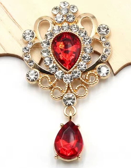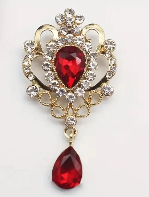 This Vintage-inspired brooch features a stunning red rhinestone made of zinc alloy. The brooch has a detachable design, making it versatile for different occasions, particularly weddings. Measuring 6cm in length, it is a trendy piece with a vintage theme, perfect for adding a touch of elegance to any outfit. The brooch is not hallmarked and is designed as a statement accessory without being handmade. Perfect for those seeking a unique and eye-catching addition to their jewellery collection.