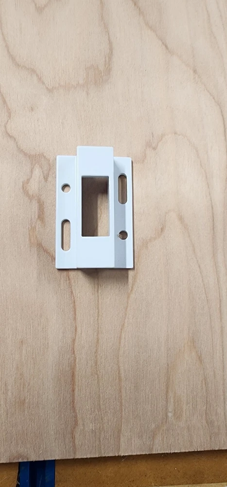 Vinyl Patio Door Lock Keep WHITE. these keepers are for the Silverline Windows by Andersen. 1 11/16" wide 2 1/2" long 11/16" tall Slot for the locking arm is 1/2" wide by 1 1/4" tall If you have any question, let me know.