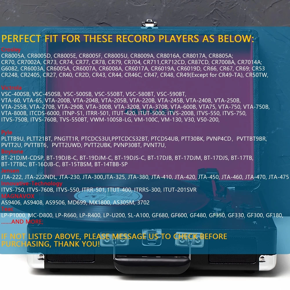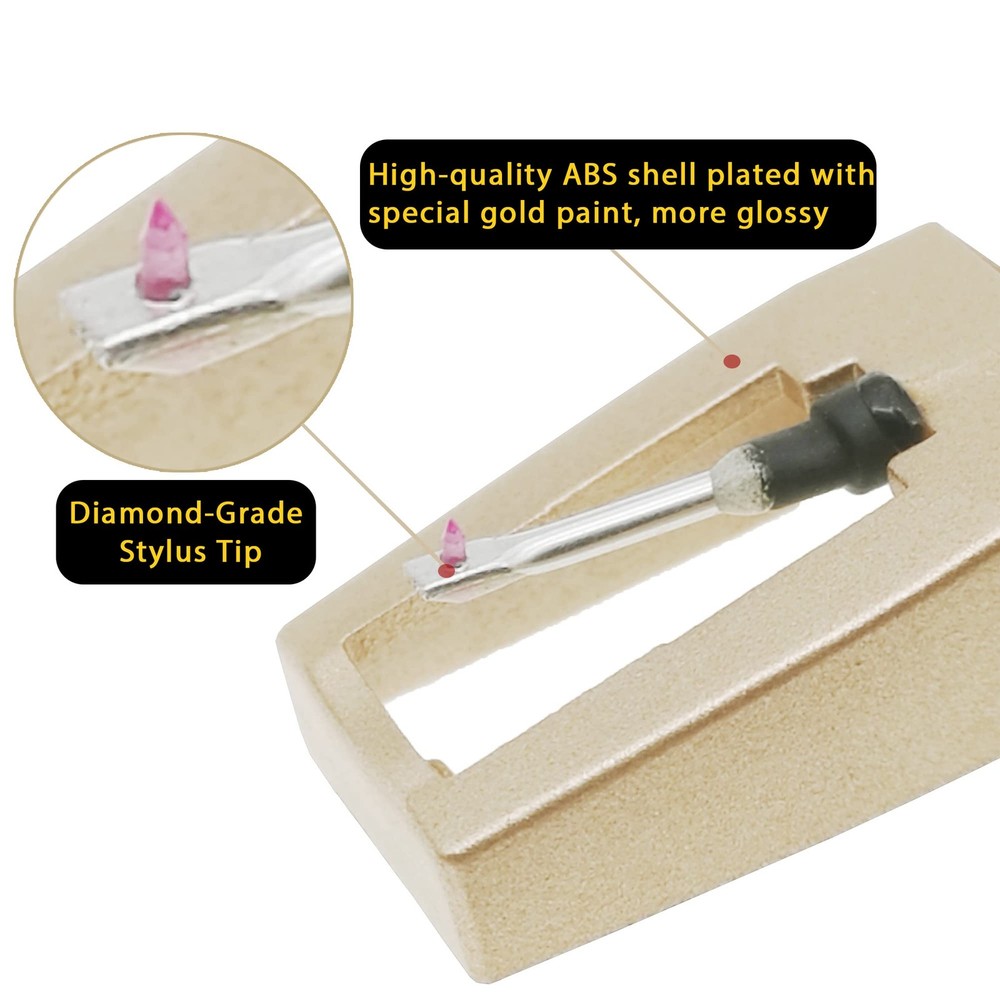 Vinyl Record Player Needles - Upgraded Golden Record Needle Diamond Turntable Stylus Replacement for Crosley Jensen Ion Victrola Phonograph (Pack of 4) Regarded as Universal Needle: Yes, This golden record player needle has an exquisite appearance and high- end quality, It is just a so-called inch universal inch record player needle that nearly can be compatible with most brands' LP record players in the markets, such as Crosley, ION, Victrola, 1byone, Jenson, Innovative- Technology, Boytone, TechPlay and more. If you can not confirm whether it works with your turntable player, please message us first Sound Clearer: The record player needles can provide more accurate and pure stereo sound, release the sound more delicate and quality when playing rock, pop, jazz, or other types of LP music No Skip Design: The upgraded turntable cartridge needle has a conical diamond stylus that leads to a strong tracking ability. channel balance (at 1 kHz), below 2 dB, two-channel (stereo), giving better bass response and greater performance Widely and Easily Application: No tools required and install the record needle easily. This LP needle can play 16, 33 1/3, 45PRM record player phonograph machine. this golden needle can guarantee a long playing life and perfect rendition of voice Intimate Packed: Each turntable player needle is equipped with a white plastic cap to protect it from any damage and packed with a durable organized box, so you don't need to worry that it will get broken or scratched during delivery to guarantee these record player needles reach you in a good condition 826084028 Shipping We offer FREE shipping on all orders! We ship within Three business days of payment, usually sooner. We use a selection of shipping services such as UPS, FedEx, USPS etc. We only ship to the lower 48 states, no APO/FPO addresses or PO Boxes allowed. Local pickups and combined shipping options are not provided at this time. Return You can return a product for up to 30 days from the date you purchased it. Any product you return must be in the same condition you received it and in the original packaging. Please keep the receipt. Payment We accept payment by any of the following methods: PayPal Please pay as soon as possible after winning an auction, as that will allow us to post your item to you sooner! Feedback Customer satisfaction is very important to us. If you have any problem with your order, please contact us and we will do our best to make you satisfied. Contact Us If you have any queries, please contact us via ebay. We usually respond within 24 hours on weekdays. Please visit our eBay store to check out other items for sale! Thank you for shopping at our store.