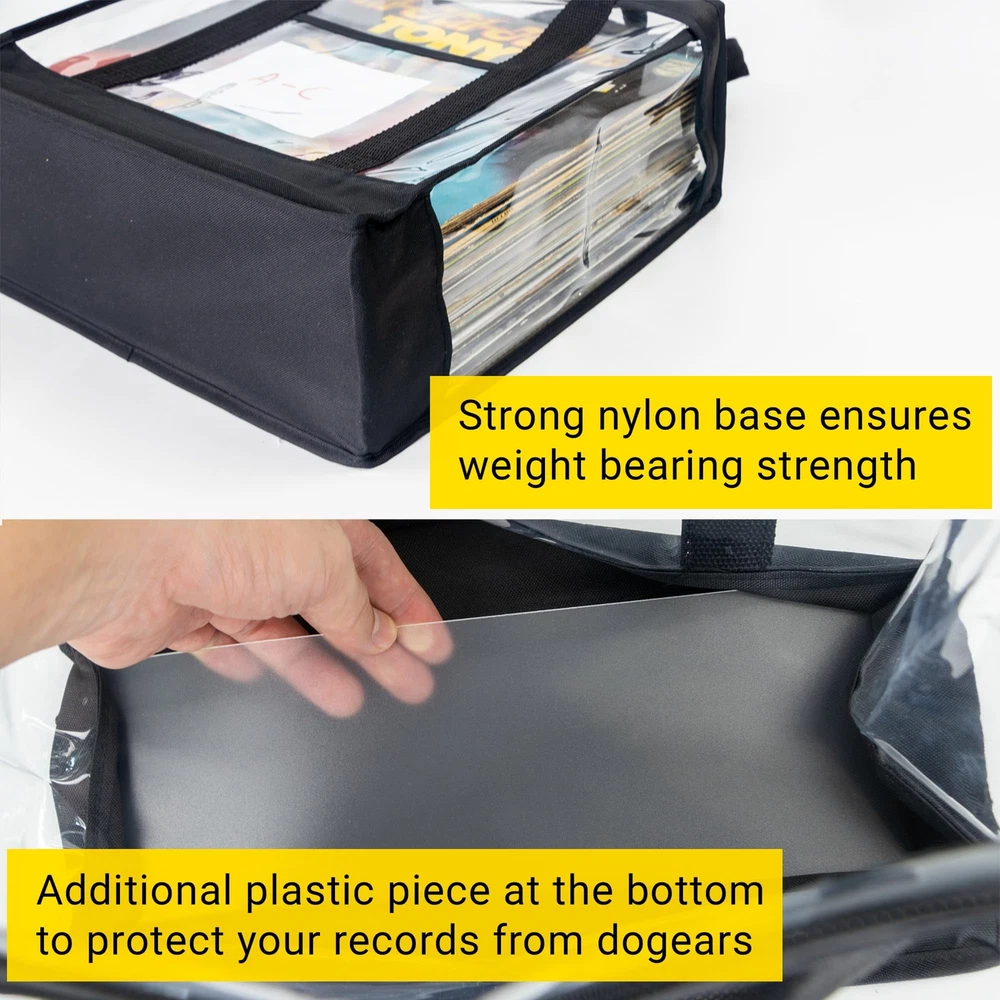 HIGH QUALITY CARRIER - Thick nylon belts run along the edges of the record bag with strong a nylon fabric base to give it extra structural strength. Not the thin PVC vinyl storage bags you see out there. Store and carry your records safely! HOLDS UP TO 168 RECORDS - With each vinyl records bag able to hold up to 42 records, this pack of 4 record bags for vinyl can store up to 252 records in your shelves, under the bed for easy out-of-the-way music collection and organization. DUST-FREE, SPLASHPROOF DESIGN - A waterproof zipper to ensure absolute protection for your record album storage collection. Have peace of mind that your collection is well protected with this vinyl storage case and vinyl records bag. STORE WITHOUT DOG EARS - Reinforced nylon base with a plastic insert baseplate helps keep dog ears away. We have designed this storage box for vinyl records to have better side seam lines, keeping your records better protected. A BRAND YOU CAN TRUST - Trusted for years by music lovers, is a brand focused in designing high quality, functional and beautiful vinyl record storage and accessories. Buy with confidence, and keep the music spinning.