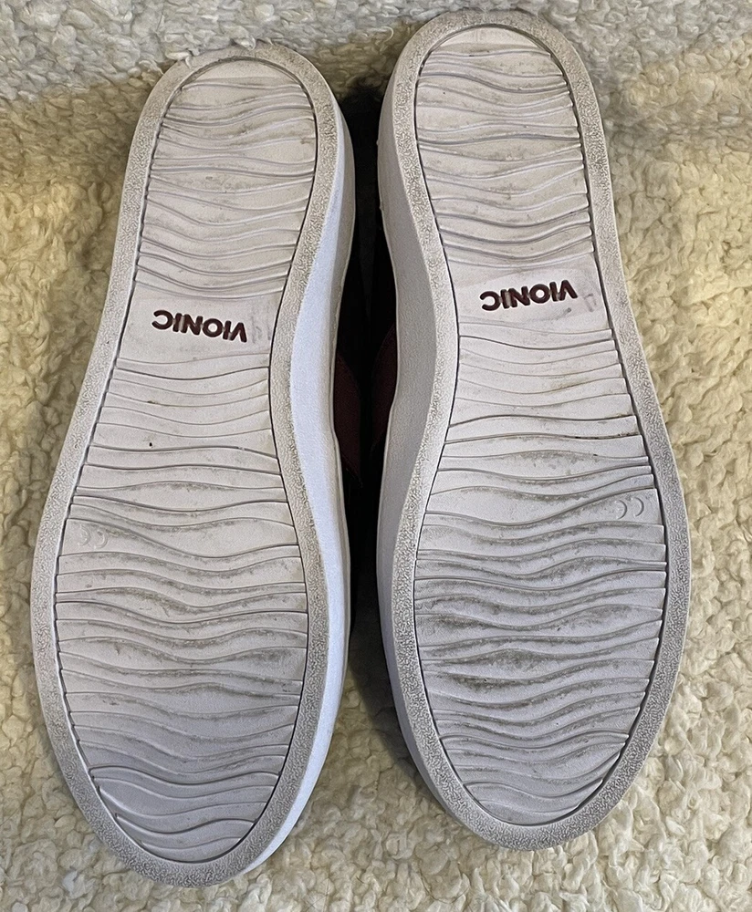 These Vionic Demetra slip-on shoes feature a stylish croc-embossed wine brown leather upper with a comfortable foam insole and soft leather lining. Designed for women in US size 8 (UK size 6, EU size 39), these casual loafers have a standard width and a durable rubber outsole. Perfect for everyday wear, these Vionic shoes combine fashion and function for a versatile addition to any wardrobe. From a smoke free home