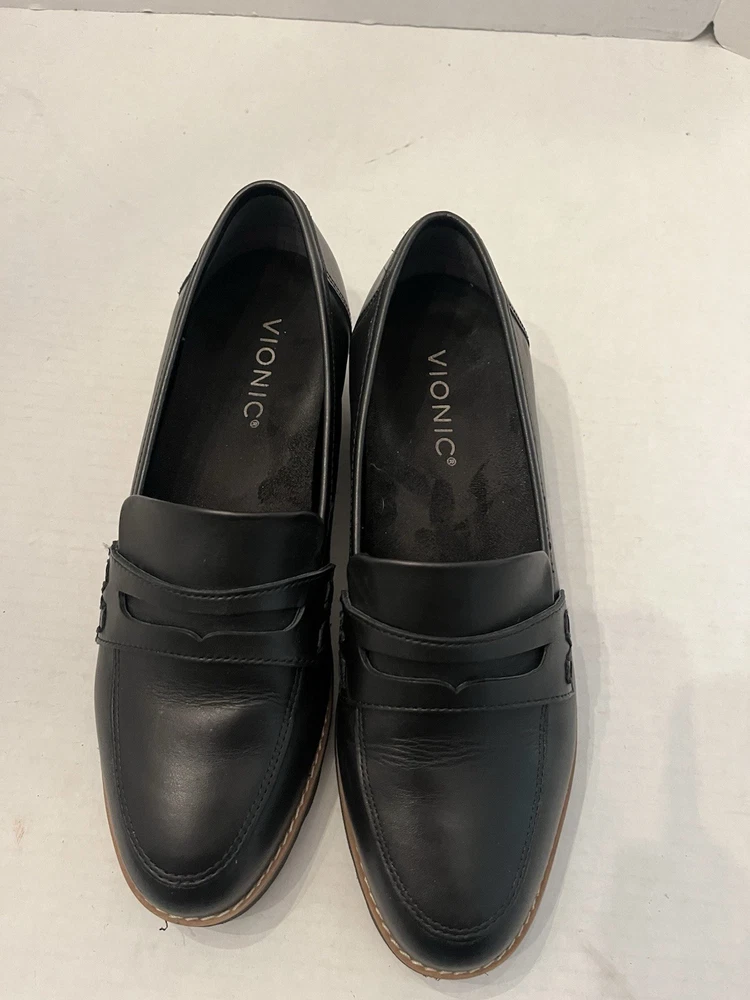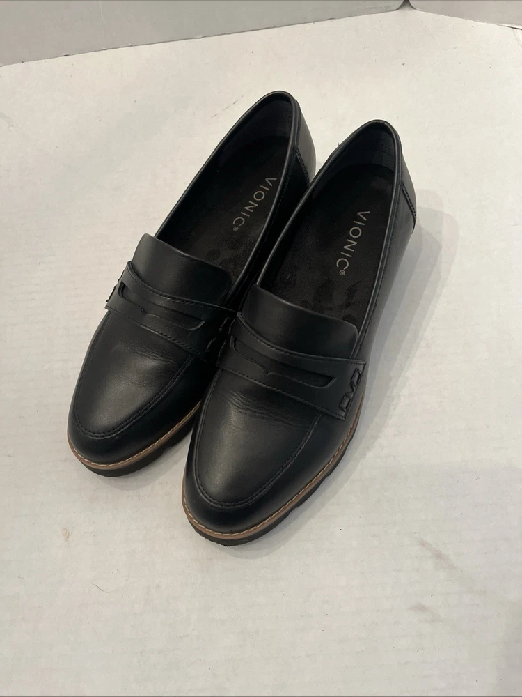 Vionic Women Cheryl II Leather Penny Loafer Shoes Black Sz 7 Retro School Fast Shipping!! Item# 1397
