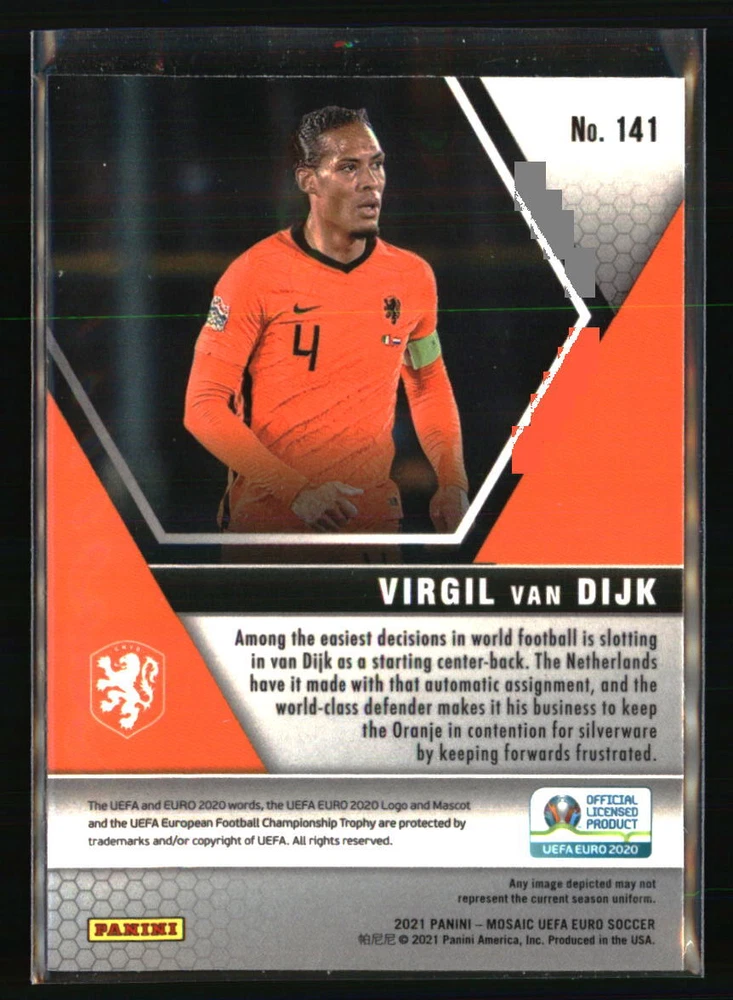 Team: Netherlands Type: Sports Trading Card Set: 2021 Panini Mosaic UEFA EURO 2020 Sport: SOCCER Autographed: No Manufacturer: Panini Player|Athlete: Virgil van Dijk Season: 2021 Year Manufactured: 2021 Card Number: 141 Graded: No