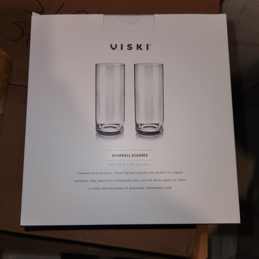 Viski Crystal Highball Glasses Set of 2. Condition is New. Shipped with USPS Ground Advantage.