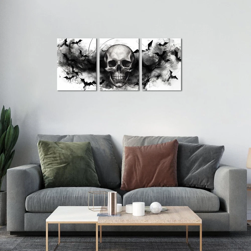 Visual Art Decor Black and White Skull Wall Art Gothic Wall Decor Spooky Gift Halloween Decoration Goth Home Decor Framed 12x16inchx3Pieces Product Details Product Dimensions: 12 x 16 x 0.2 inches Item Weight: 1.96 pounds Manufacturer: Visual Art Decor Country of Origin: China Date First Available: July 24, 2023 Size:12inchx16inchx3 Pieces (30cmx40cmx3 Pieces) Lightweight & Easy to hang: Included mounting hardware, making it a breeze to install on any wall Easy to Clean: Simply wipe clean with a damp cloth, making maintenance effortless for everyday life Durable & Long-Lasting: Built to withstand the test of time, our canvas wall art is made with premium materials and expert craftsmanship, ensuring it stays beautiful for years to come Perfect for gothic bathroom decor, bedroom decor, office decor, living room decor, guest room decor, master room decor and other space