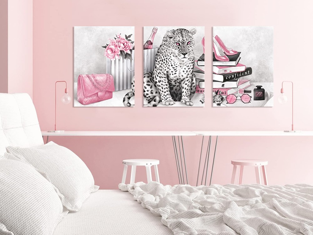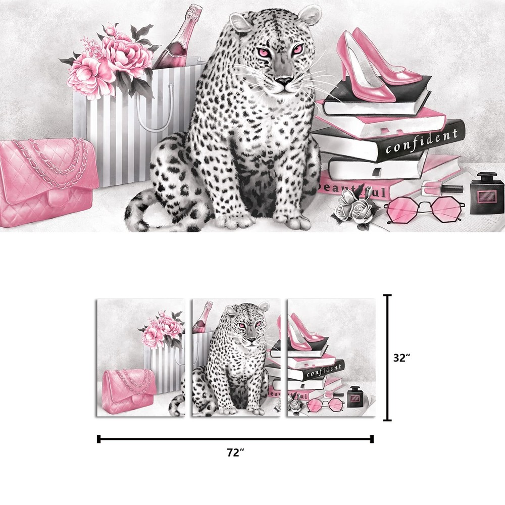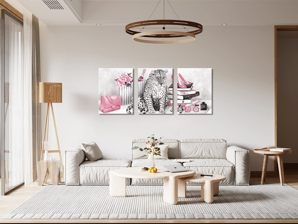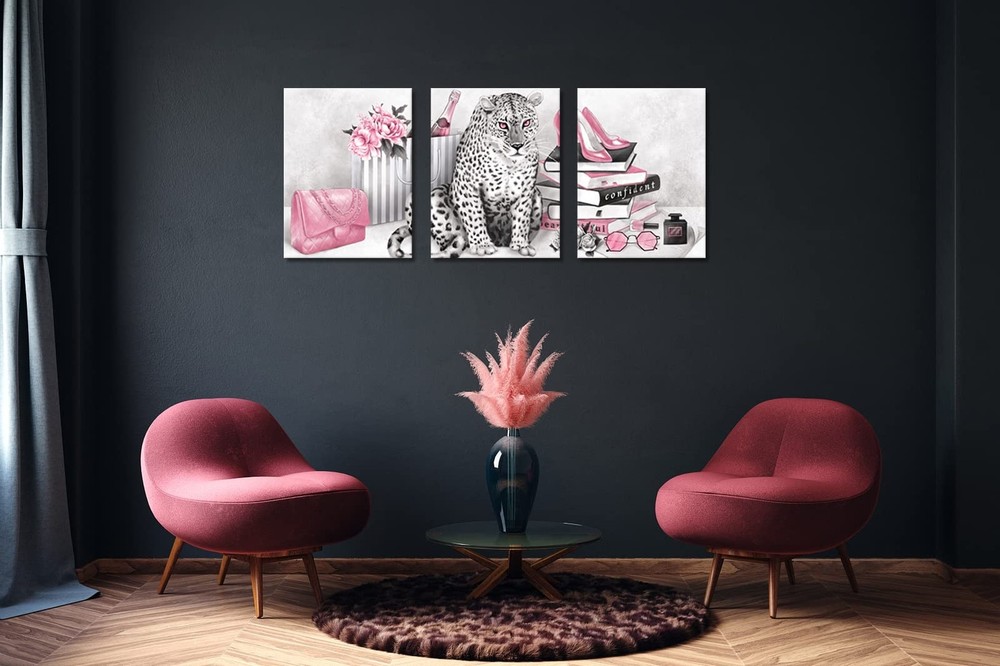 Visual Art Decor Glam Fashion Picture Pink Blush Wall Art Leopard Books High Heel Shoes Perfume Canvas Prints for Modern Home Office Woman Girl Makeup Bedroom Wall Decoration Creative Design Gift Product Details Size: 24inx32inx3 Pieces Brand: Visual Art Decor MPN: Does not apply UPC: Does not apply EAN: Does not apply Product Dimensions: 72 x 32 x 0.2 inches Item Weight: 7.78 pounds Manufacturer: Visual Art Decor Country of Origin: China Date First Available: September 1, 2022 Size:24inx32inx3 Pieces Lightweight & Easy to hang: Included mounting hardware, making it a breeze to install on any wall Easy to Clean: Simply wipe clean with a damp cloth, making maintenance effortless for everyday life Durable & Long-Lasting: Built to withstand the test of time, our canvas wall art is made with premium materials and expert craftsmanship, ensuring it stays beautiful for years to come Perfect for bathroom decor, bedroom decor, office decor, living room decor, guest room decor, master room decor, boys room decor, girls room decor