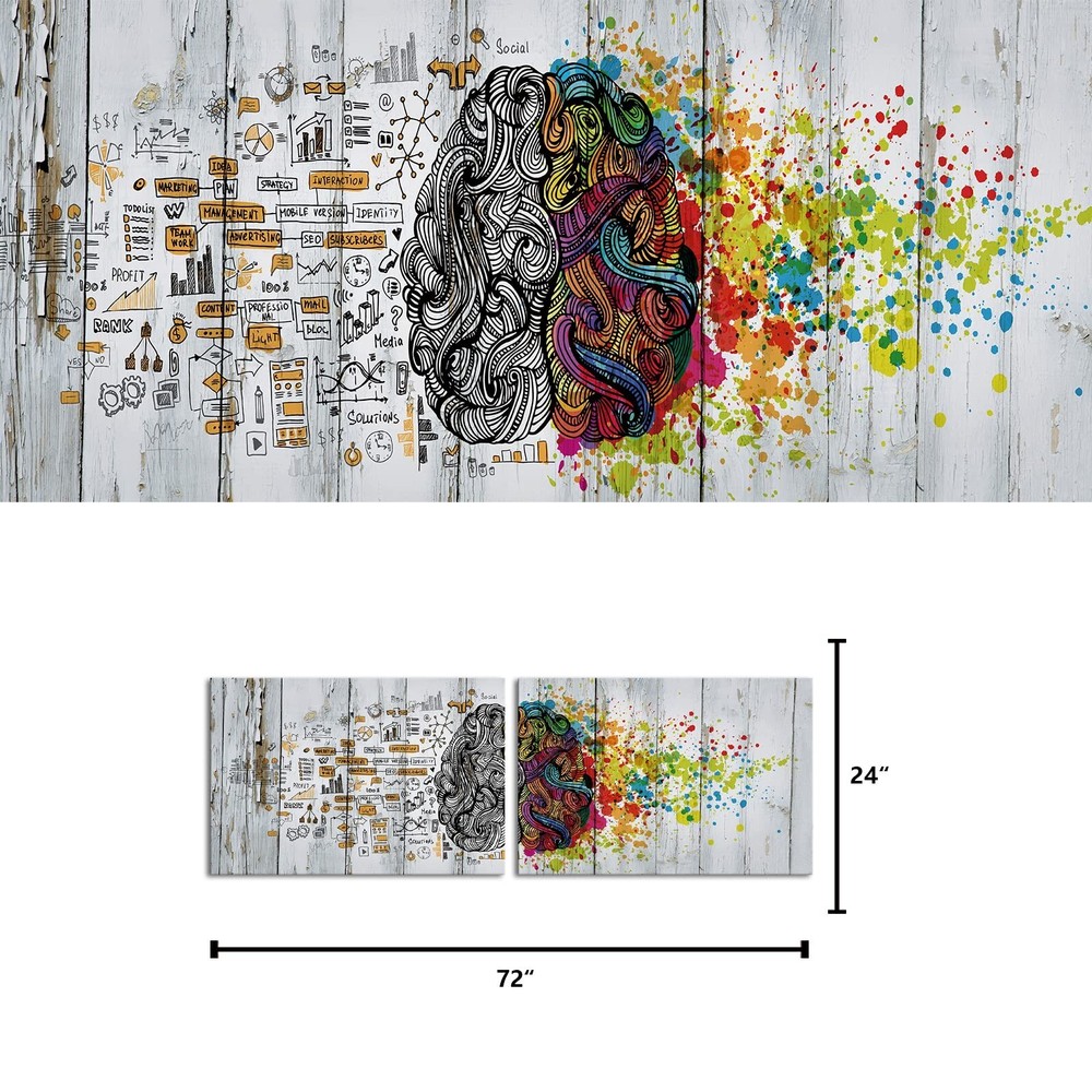 Visual Art Decor Office Wall Art Left and Right Brain Painting Office Wall Decor Framed (36x24 inch x 2Pieces) Product Details Size: 36inch width x 24inch height x 2 Pieces Lightweight & Easy to hang: Included mounting hardware, making it a breeze to install on any wall Easy to Clean: Simply wipe clean with a damp cloth, making maintenance effortless for everyday life Durable & Long-Lasting: Built to withstand the test of time, our canvas wall art is made with premium materials and expert craftsmanship, ensuring it stays beautiful for years to come Perfect for bathroom decor, bedroom decor, office decor, living room decor, guest room decor, master room decor, boys room decor, girls room decor