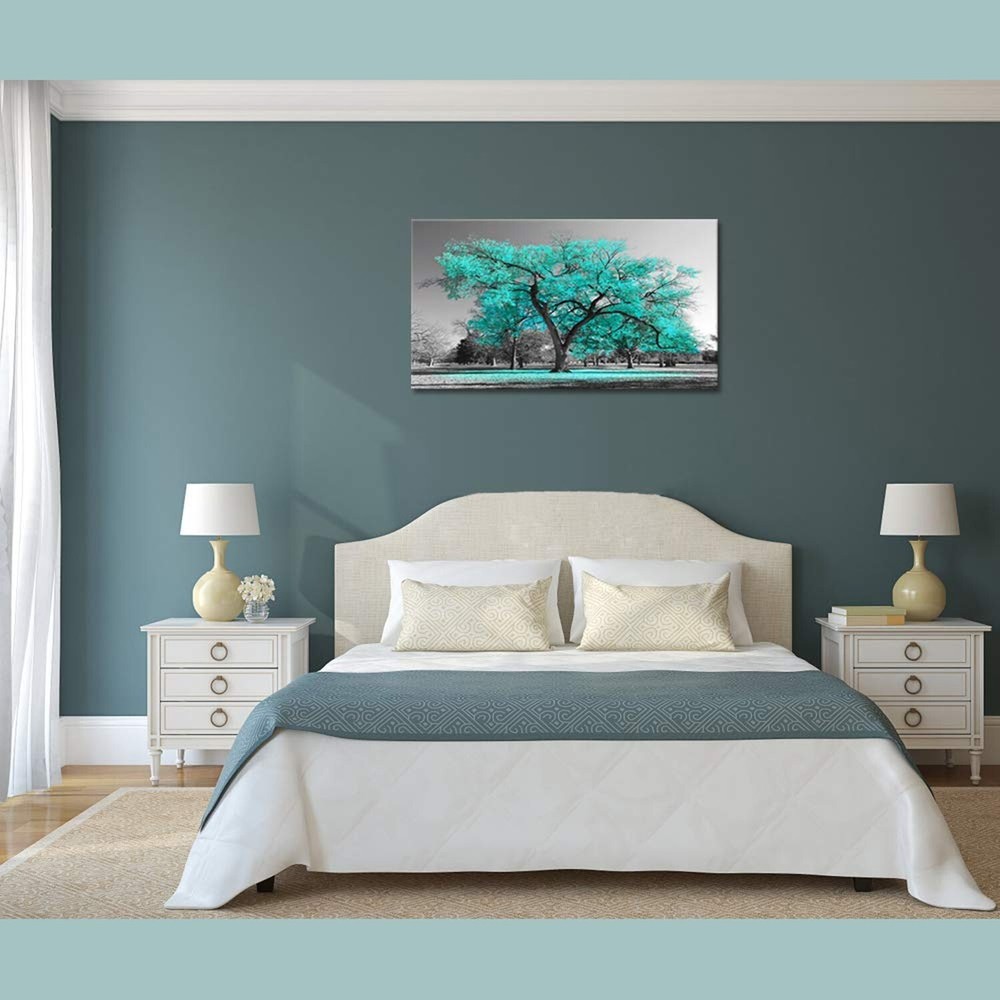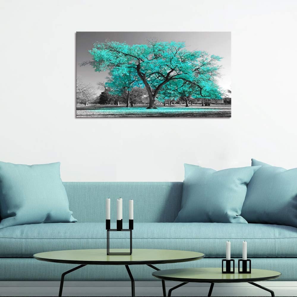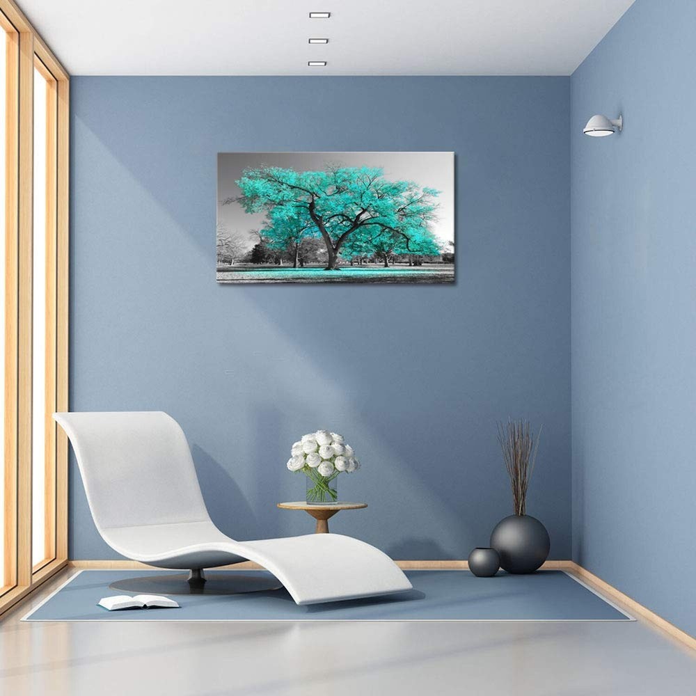 Visual Art Decor Teal Tree Canvas Wall Art Turquoise Wall Decor Canvas Prints, Framed Artwork for Living Room Bedroom Decoration 20inx36in Product Details Size:20"x36"(50x90cm), Great pieces to liven up and energize any wall or room Stretched and Framed, Ready to Hang.All installation hardware kit attached Giclee Artwork, High Quality Eco-solvent Canvas Prints .Museum Exhibition Display Wrapped,Premium Artwork Gallery wrapped on pine wood bars, the image continues around the sides. Neatly taped on the back with no staples or tacks visible Any problems,please contact us without hesitation, we treasure your purchase experience much.And due to different brand of monitors, actual wall art colors may be slightly different from the product image