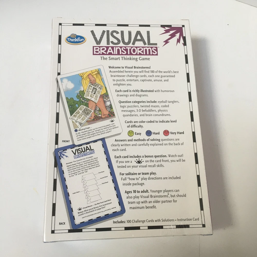 Visual Brainstorms Game The Smart Thinking Game 100 Challenges Think Fun Game is new and factory sealed, may have some shelf wear. Ages 10 and up, multiple players. Please see photos for details and condition. Thank you!