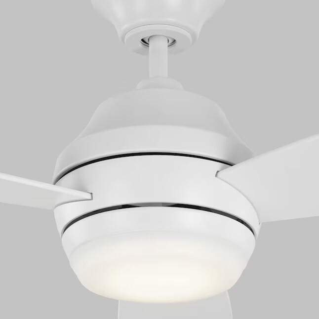 The Ikon 52 LED ceiling fan features an LED light kit with a frosted acrylic shade in four finishes. With a sophisticated and traditional design, the Ikon offers both form and function. From the brand formerly known as Monte Carlo Modern 3-blade ceiling fan ideal for bedrooms, living rooms, family rooms, and outdoor covered porches and patios Features a 6-speed, reversible motor and remote controllable 2700K-3000K-4000K color temperature integrated LED light bulb 4'' matte white downrod included, sloped ceiling compatible, and includes all mounting hardware for easy installation Damp Rated