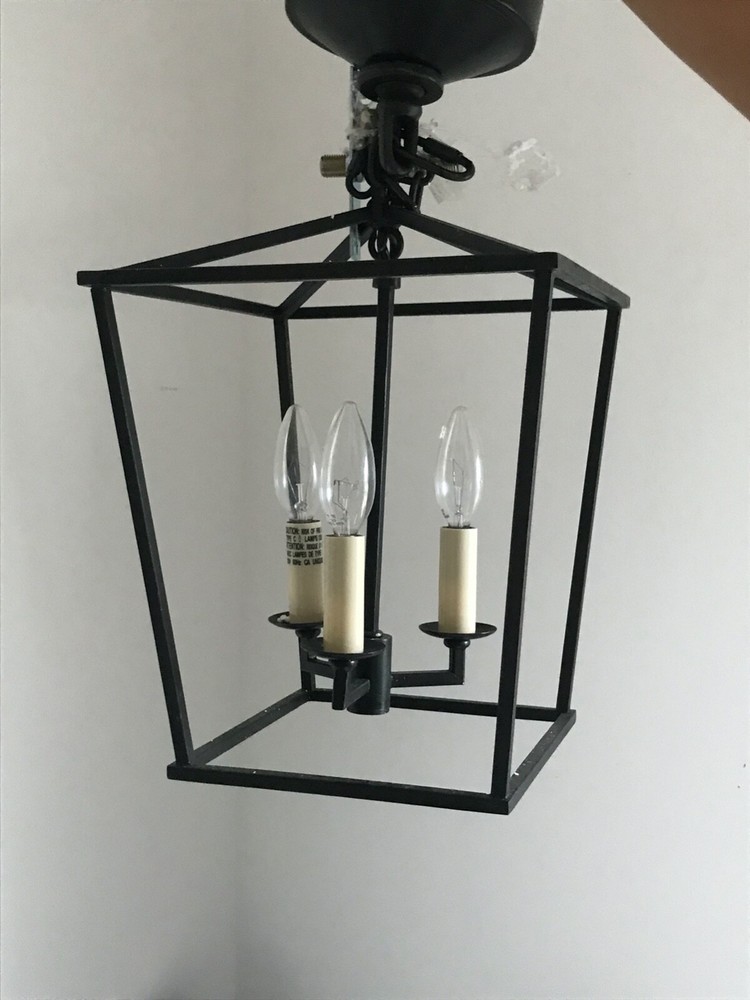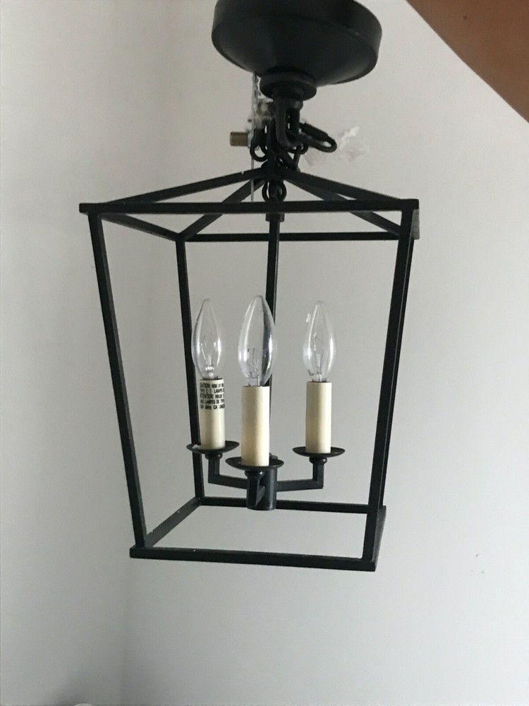 Cast Iron Indoor Lantern Light Fixture NEW CONDITION. Height: 14" Width: 9.75" Canopy: 5.5" Round Socket: 3 - E12 Candelabra Wattage: 3 - 60 C11 Chain Length: 6' Weight: 7 lbs. Link to specifics on original website https://www.visualcomfort.com/darlana-small-lantern-chc2164/?selected_product=CHC%202164AI#2461=36341