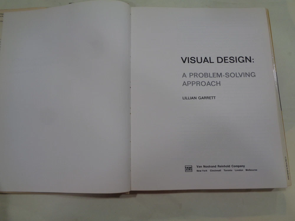 Visual Design: A Problem Solving Approach by Lillian Garr 1967 MCM Vintage HBDJ Visual Design: A Problem Solving Approach by Lillian Garr The book features a unique look at modern design, plenty of charm and insight, hard to find title, will look great in your collection. Copyright 1967 Pages: 215 pages Publisher: Van Nostrand Reinhold Company The book measures approx. 11 by 8 ½ inches. The hardcover is nice, dustjacket is good with some scuffing, gentle wear and rubbing. The spine end is good with light wear. The boards and corners are in good shape. The hinges and binding are tight and strong. The pages are good with some minor wear, name and price stamp on front page, book is nice. Shipping weight is 4 pounds Inventory: 0425LD155