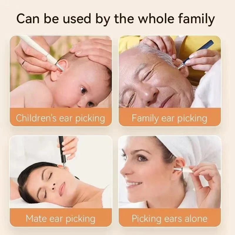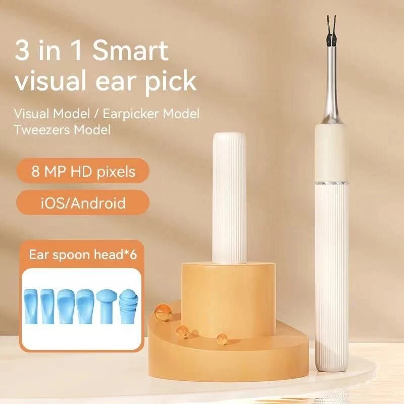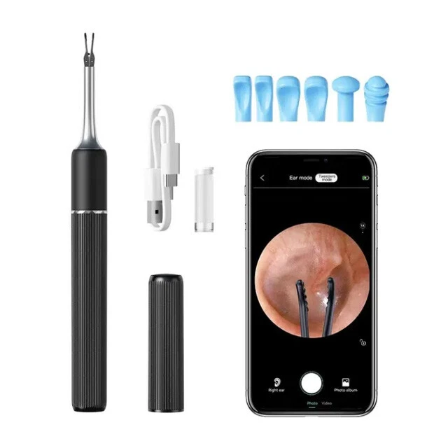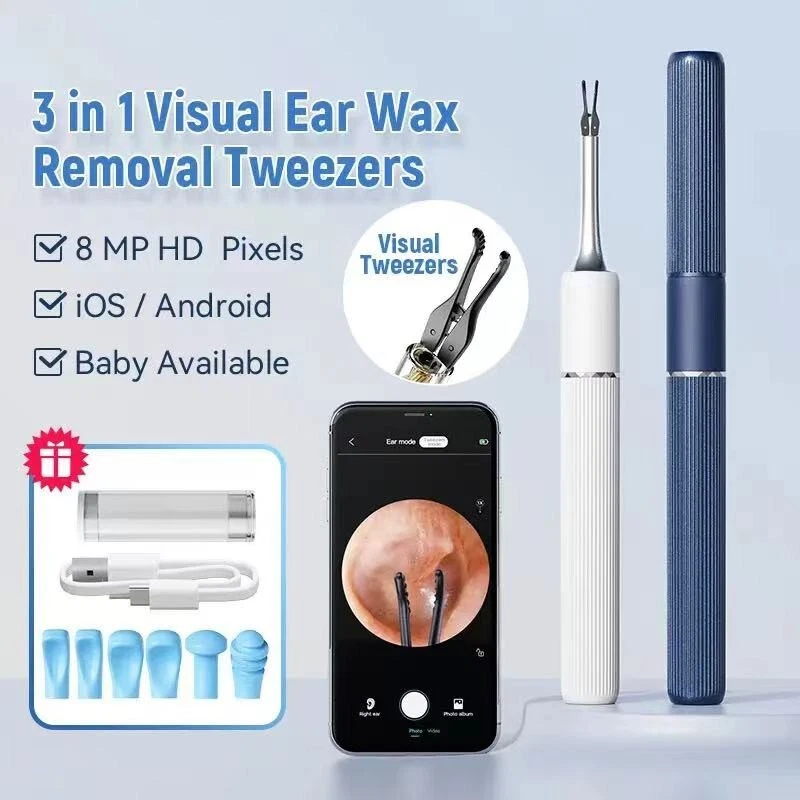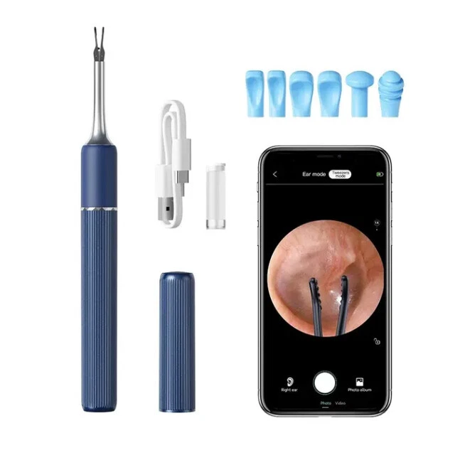 Wireless ear cleaner smart visual ear wax removal sticks WiFi otoscope 3.2mm camera borescope with LED lights 1920P HD ear care Features: • Wireless and Cordless :No more tangled wires! The ear cleaner is wireless and cordless, making it easy to use and maneuver. • Smart Visual Ear Wax Removal Sticks :The ear cleaner comes with smart visual ear wax removal sticks that help remove ear wax efficiently and safely. • High Definition Camera :The ear cleaner has a 1920P HD camera that provides clear and detailed images of your ear canal, making it easier to identify and remove ear wax. • LED Lights :The ear cleaner has LED lights that illuminate your ear canal, making it easier to see and clean. Specification: Camera Pixel: 10MP Image Resolution: 1920*1080 Camera diameter: 4.5mm 6 led lights Material: PC + ABS Angle of view: 83° Focal length: 1.4-2cm Waterproof: IP67 Picture format: JPG Video format: MP4/AVI Support system: ios/android Certification: CEA / RoHS /FCC / FDA Battery capacity: 350mAh/70 mins Sensor: 6 axis APP: SUNUO Packing List: 1x Visual Ear cleaner with Camera 1x Storage box 12x Silicone ear spoon accessories 1x Type-C 1M charging cable 1x Instructions 1x Color box How to use: 3 in 1 Samrt Visual Ear Wax Removal:Visual Model, Earpicker Model , Tweezers Model. Ear Cleaner core features :8MP HD pixels, Clampable robotic arm.6-Axis gyroscope, temperature control, Wifi connection. Uncover and start clean, hygienic, dust proof. Ear Cleaner with 8MP HD pixels, Clampable robotic arm.6-Axis gyroscope, temperature control, Wifi connection.