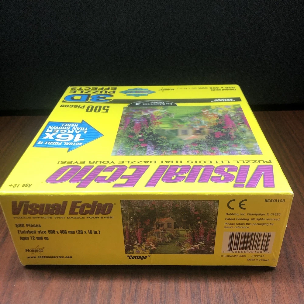 Get lost in the beautiful world of flowers with this brand new Visual Echo 3D Effect "Cottage" Flower Themed 500pc Jigsaw Puzzle. With vibrant hues of pink and a picturesque cottage scene, this puzzle is perfect for both beginners and puzzle enthusiasts. The 3D effect adds an extra layer of excitement and challenge, making it a great addition to your puzzle collection. Recommended for ages 12 and up, this puzzle is sure to provide hours of fun and relaxation. So grab a cup of tea, put on some soothing music and get ready to piece together a stunning work of art.