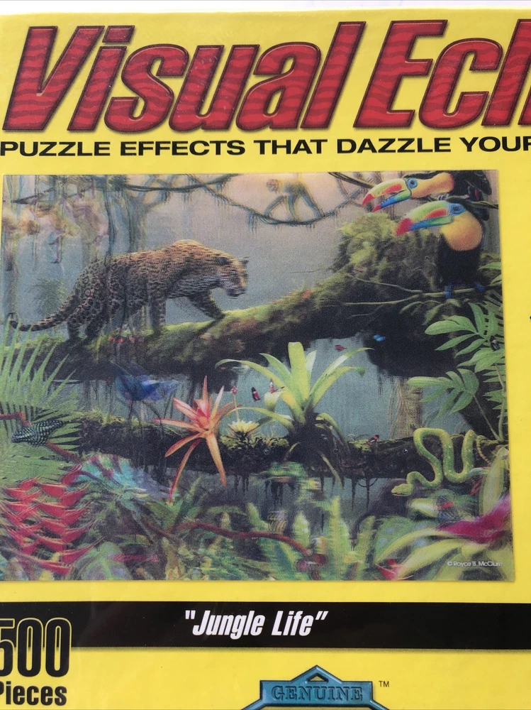 Visual Echo 3D Puzzle "Jungle Life" Royce Art 500 pieces Complete NEW FACTORY SEALED! Completed size: 20" x 16" Exactly what is pictured is what you'll be receiving. Please refer to all photos before purchasing. Before FILING A CLAIM, LEAVING NEUTRAL OR NEGATIVE FEEDBACK please contact me directly so that I can try to solve the issue at hand. If there is something wrong with the item please save all packaging and the original mailer box that it was sent in. We accept returns if item is not as describe in the description or shown in the pictures. After I receive the item back...I will send a full refund for the item. We are happy to answer ANY questions. I will be glad to send more picture. I am no expert on some items and cannot guarantee anything about the piece beyond what I can physically see.Shipping within 24-48 hours after payment. bin-