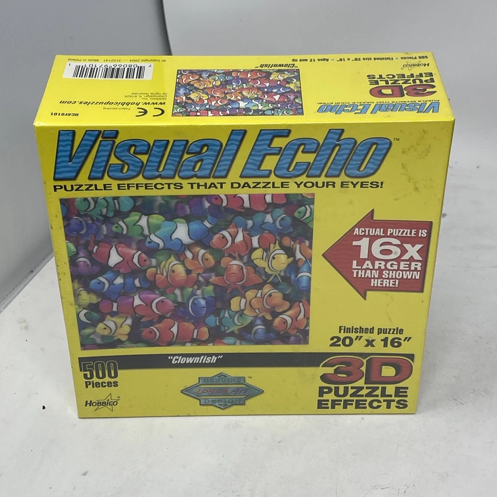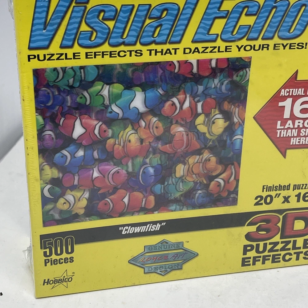Visual Echo Clownfish 500 Piece 3D Puzzle Effects 20"x16" New Sealed. Condition is New. Shipped with USPS Ground Advantage.