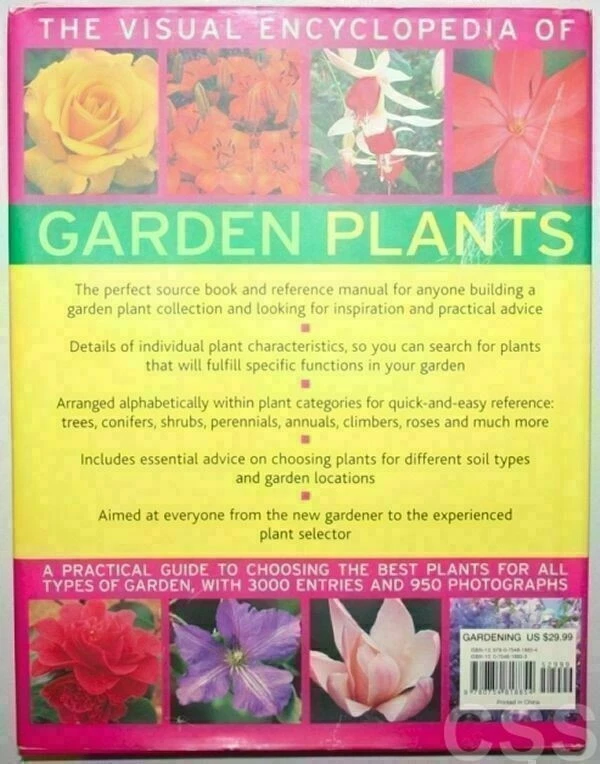 The Visual Encyclopedia of Garden Plants: A Practical Guide to Choosing the Best Plants for All Types of Garden, with 3000 Entries and 950 Photographs Hardcover Book by Andrew Mikolajski Beautifully illustrated! Book measures 12" x 9.25" 246 pages long (not including index) FREE shipping Will ship to continental U.S. ONLY No refunds, no returns, sold as is Powered by SixBit's eCommerce Solution