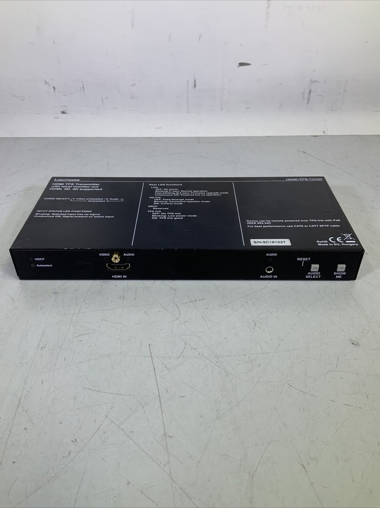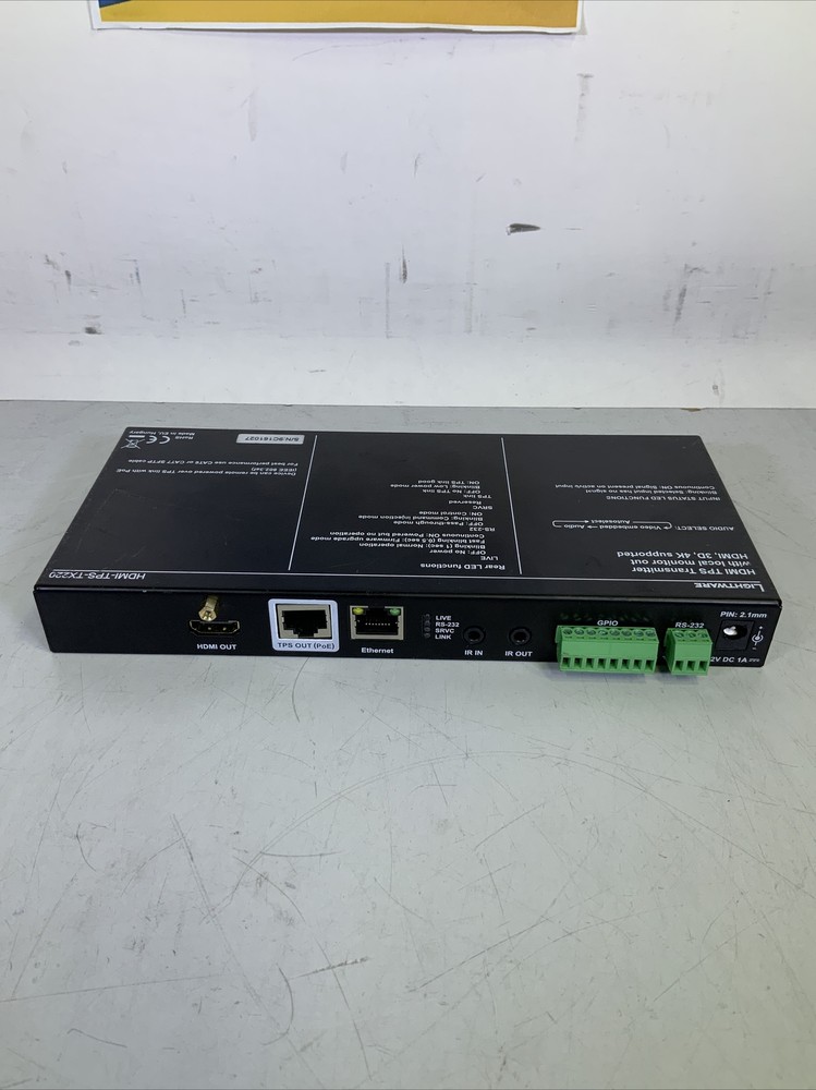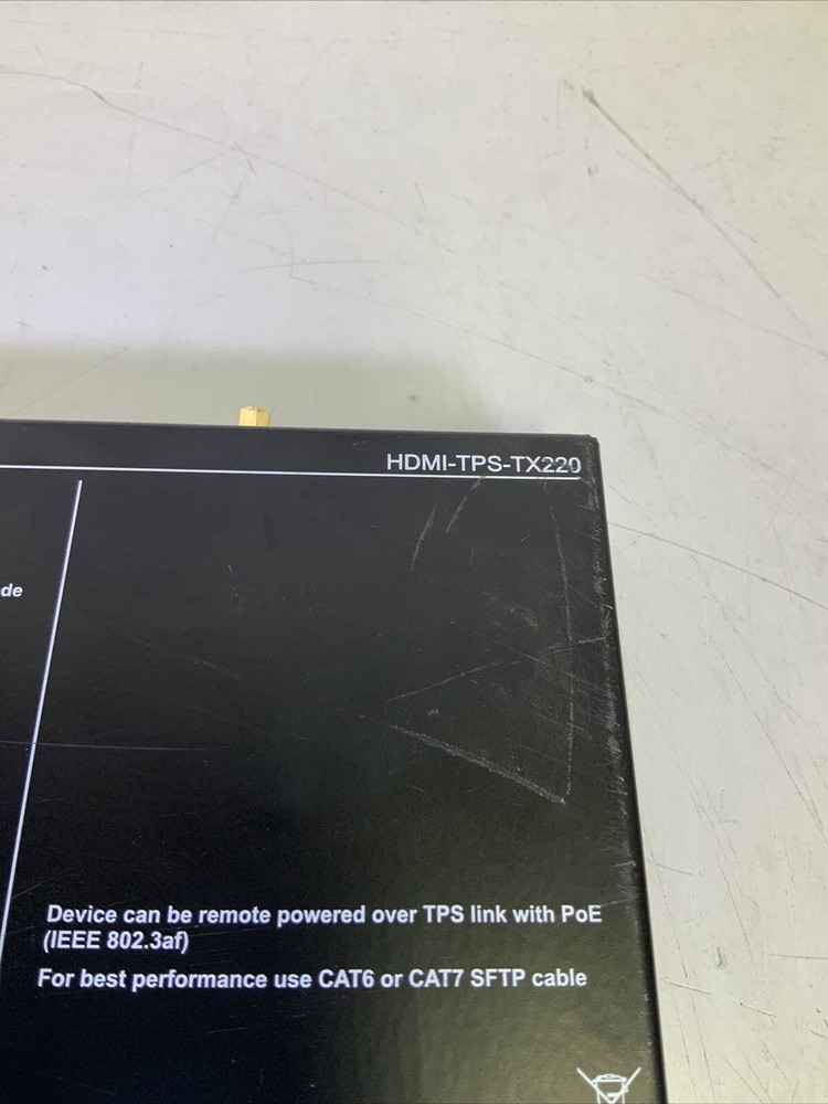 Visual Engineer Lightware HDMI-TPS-TX220 Transmitter Item shows minor signs of use. No additional accessories or cables included. Buy in confidence with our 30-Day Hassle-Free Return Policy ! ___________________________________________ IMPORTANT PLEASE READ: Listing is only for the item(s) pictured unless stated otherwise. If an accessory is not stated or pictured in the listing, it is not included. Please read all information before bidding/buying. ___________________________________________ Our Mission: At epartsonsale , we treat every customer with honesty and integrity. Providing a superior experience for every customer is our top priority. For questions or concerns regarding any of our products, please do not hesitate to message us. Our dedicated team is standing by to assist you. _____________ ______________________________ Shipping Information: Items are shipped via FedEx or USPS. Expedited shipping is available upon request (additional charges may apply). We offer local pick up in some cases. We reserve the right to change shipping carrier or class based on seller discretion. We are closed on Saturday and Sunday. Order handling time is 2 business days , however, most orders ship the next business day. ___________________________________________ 30-Day Hassle Free Return Policy: A return may be initiated within 30 days of receiving your item. If the item to be returned is defective or inaccurate, a return shipping label will be provided free of charge. Upon receipt of the retuned item, a replacement item (if available) will be shipped free of charge or a refund issued. Buyer is responsible for shipping charges on any item that is not defective or inaccurate. Refund will be issued upon receipt of the returned item given it is received in the same condition as it was sent out. Items in "new" condition that are returned are subject to a 15% restocking fee. Returns must have all original packaging and accessories. Items must be shipped back in its received condition and properly packed. Return is void if the barcode sticker "BS-XXXX" is removed. Please contact us first before opening a return. ___________________________________________ Payment Information We gladly accept the following forms of payment: Visa , MasterCard , American Express , Discover PayPal Apple Pay & Google Pay ___________________________________________ Bidding Agreement If payment is not made within 7 business days of auction end date, the auction will be considered closed.