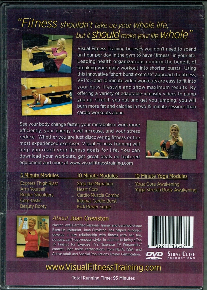 Get in shape with Visual Fitness Training, a DVD series from Stone Clift Productions. With a run time of 95 minutes, this weight training, toning, and bodybuilding program is perfect for those looking to improve their strength and fitness. The program features Joan Creviston as the actor and is presented in English language with a tall/DVD case format. This exercise and fitness DVD set is ideal for those interested in the sub-genres of weight training, toning, bodybuilding, and strength training. The movie/TV title is "fitness" and it falls under the categories of DVDs & Blu-ray Discs and Movies & TV. Purchase this set today and start your journey towards a healthier you.