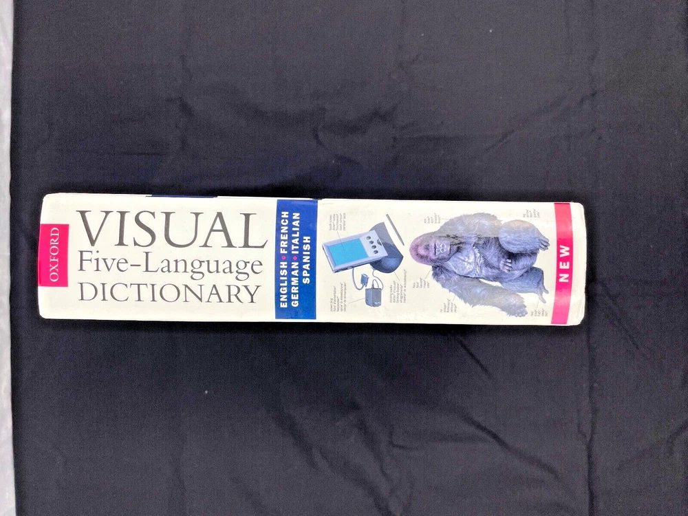 For sale the beautiful illustrated Visual Five-Language Dictionary, featuring English, French, German, Italian and Spanish. This comprehensive reference book is authored by Oxford and is perfect for anyone looking to expand their vocabulary in multiple languages. This dictionary is in excellent condition, with no signs of wear and tear. It's a great addition to any personal library or language learning arsenal. Perfect for students, professionals, or anyone interested in learning new languages. Get your hands on this amazing resource today!