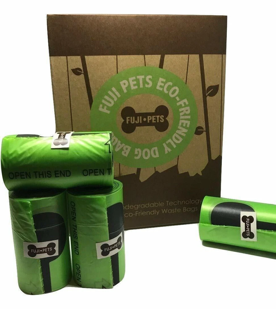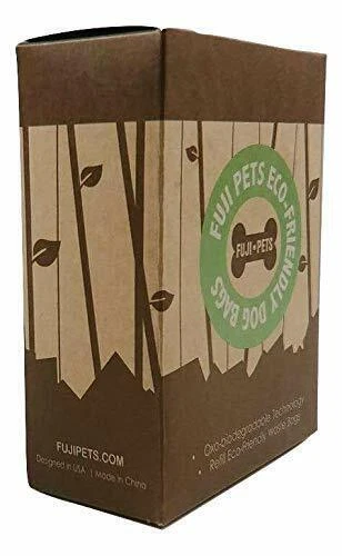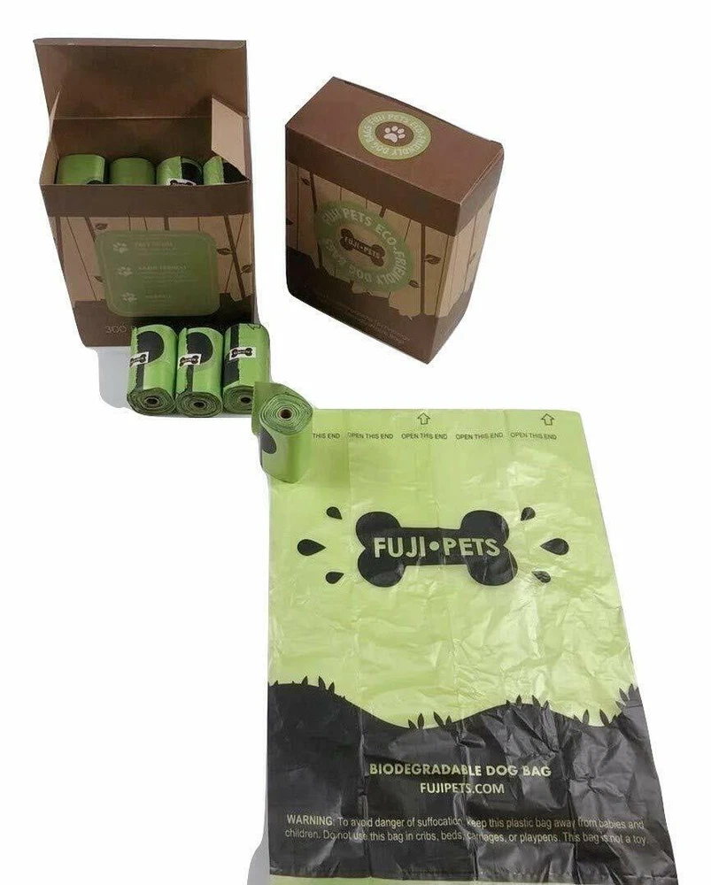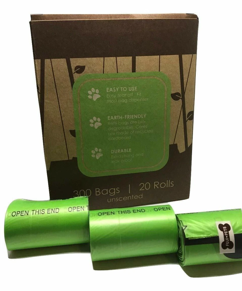 **Visual Friendly design** FUJIPETS Eco-Friendly OXO-Biodegradable Dog Bags - 20 Rolls / 300 Bags Made of recycle materials, t hese unscented dog waste bags from FUJIPETS are very easy to tear-off and open, making your dog walk stress-free! Simply load a roll of the FUJIPETS eco-friendly biodegradable dog waste bags into the dispenser and go! Features: Visual Friendly design. The waste can't be seen from the front because of the dark color design on the front of the bag. Recycled Paper Cores Easy Tear-off / Easy Open: Easy to open and detach from the roll quickly. Biodegradable; Earth Friendly; No more burden on the environment. Leak-Proof, strong and durable dog poop bags for clean, sanitary handling. Bag Size: 9 in x 13 in 20 Rolls Per Box; 15 Bags Per Roll (Total: 300 Bags) Bag Thickness: 15 Microns Refill Rolls: Fits all types of leash dispensers. Unscented
